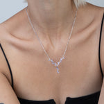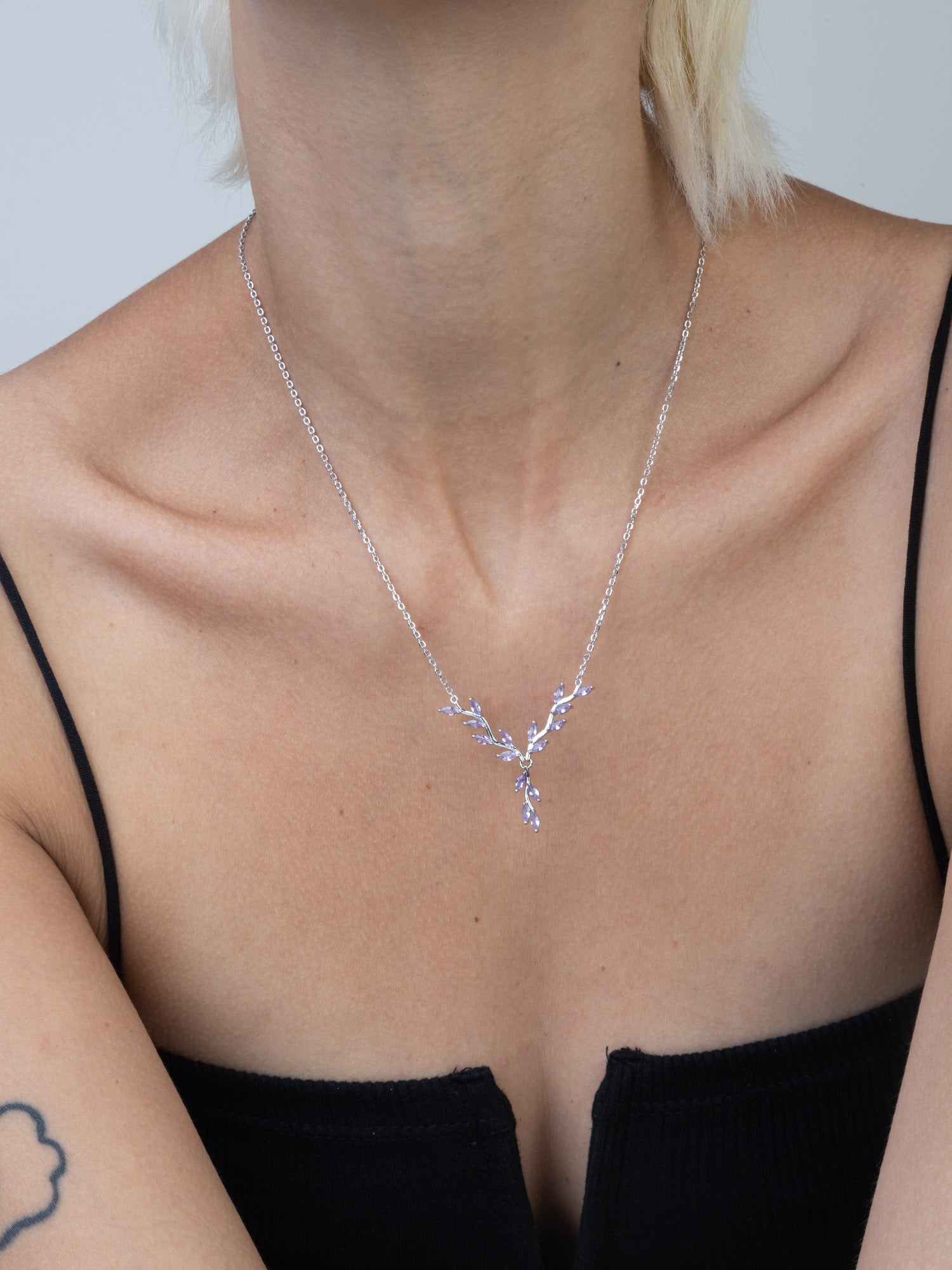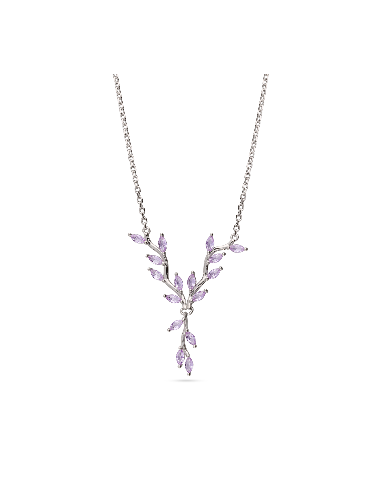 Fio com pendente em prata 925 com folha e zircónia violeta
