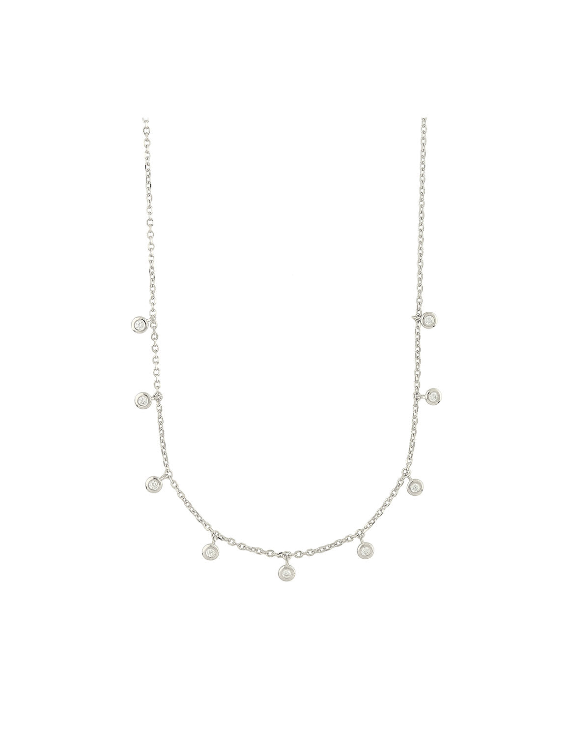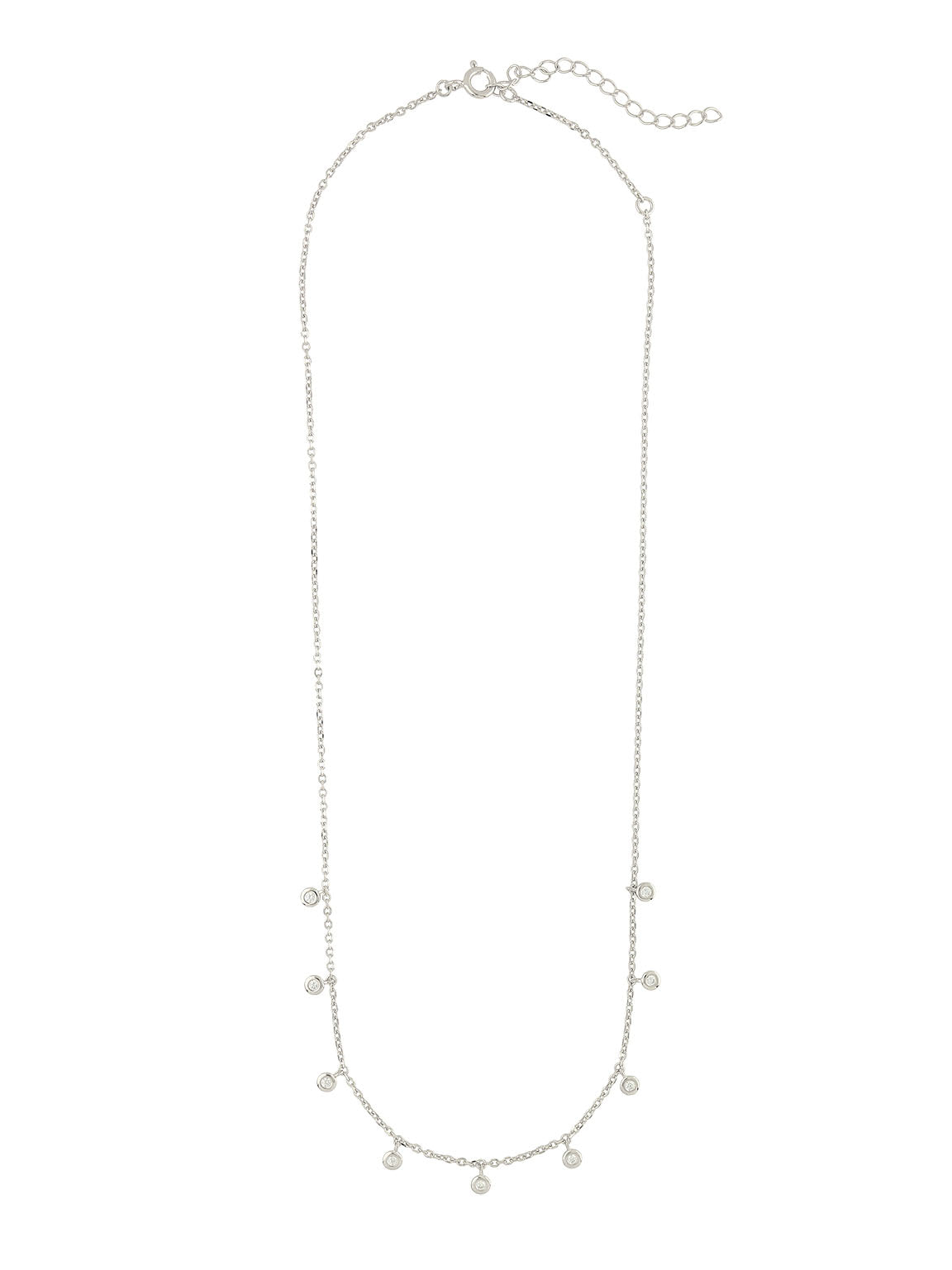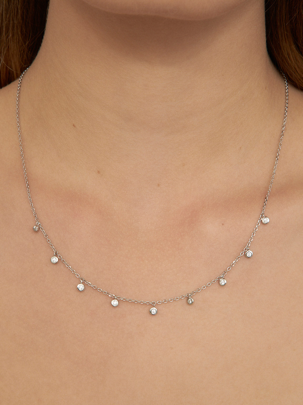 Colar, Prata de lei 925, Zircónia de cultivo, Claro, Círculo, Feito à mão,, Prateado, 3.55 gramas.