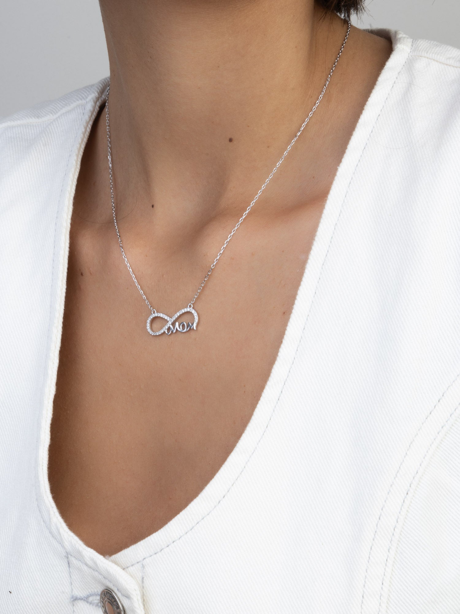 Fio com pendente "MOM" infinito em prata 925 com zircónias
