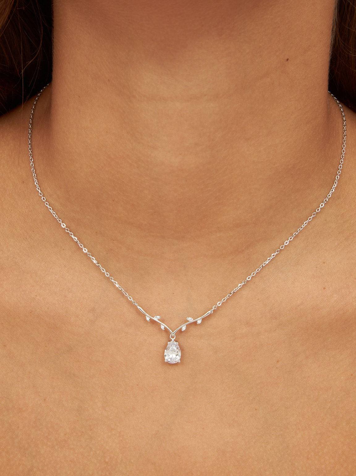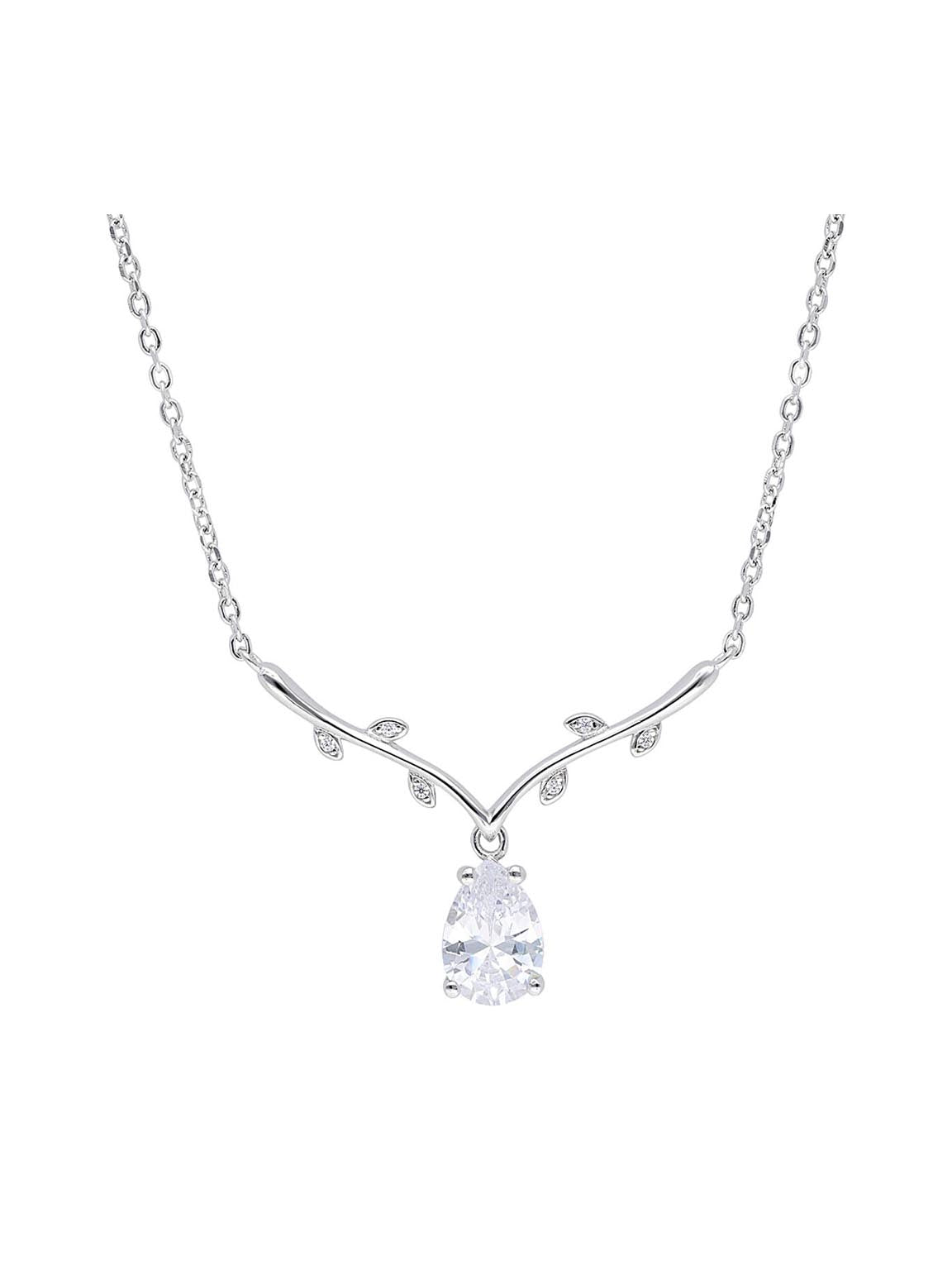 Fio com pendente, Prata de lei 925, Zircónia de cultivo, Claro, Lágrima, Folha, Feito à mão,, Prateado, comprimento do pendente: 2.2 cm, largura do pendente: 3.5 cm, 4.49 gramas.