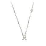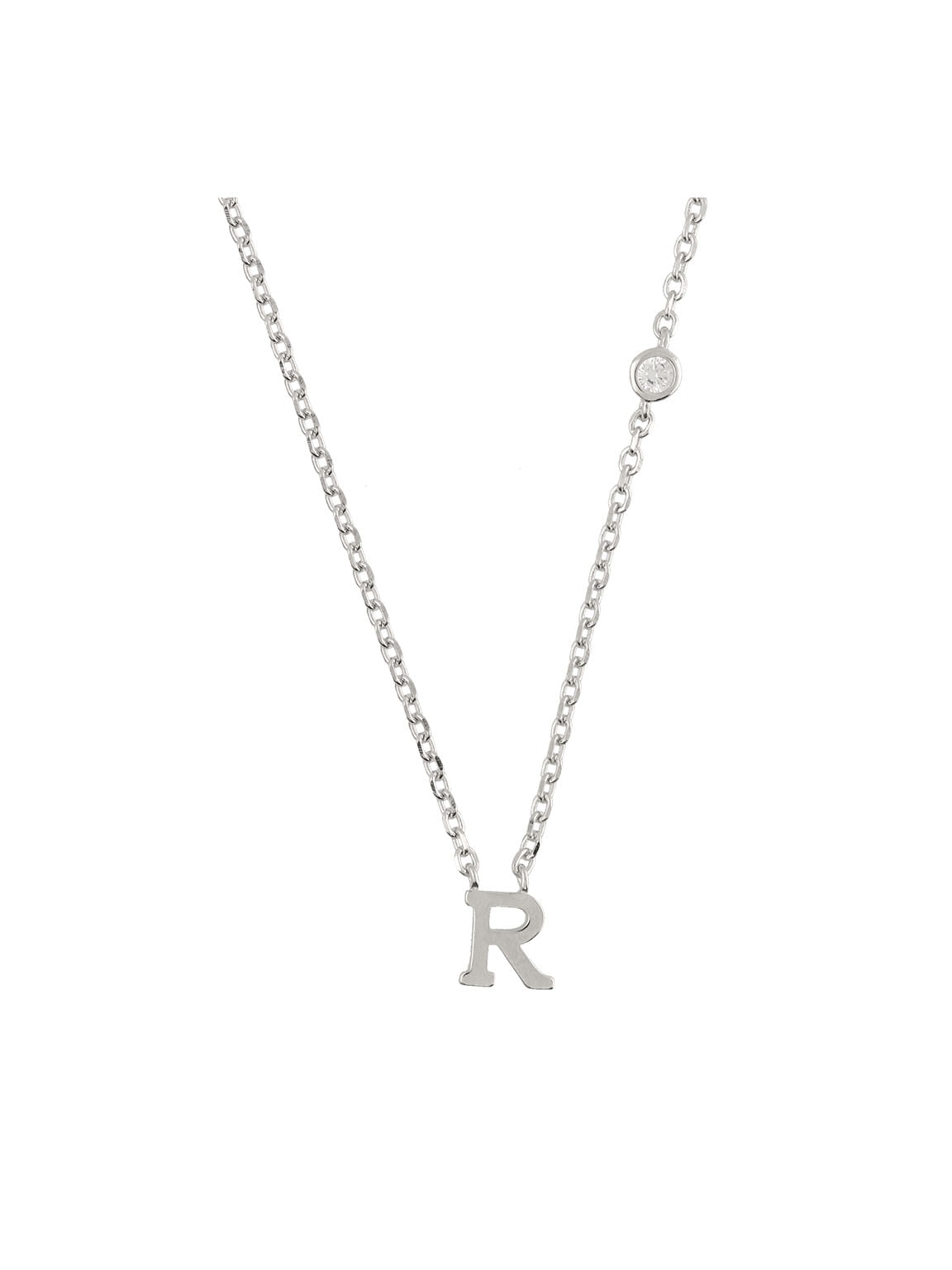 Fio com pendente, Prata de lei 925, Zircónia de cultivo, Claro, Círculo, Letra, Feito à mão,, Prateado, comprimento do pendente: 0.7 cm, largura do pendente: 0.6 cm, 2.84 gramas.