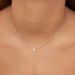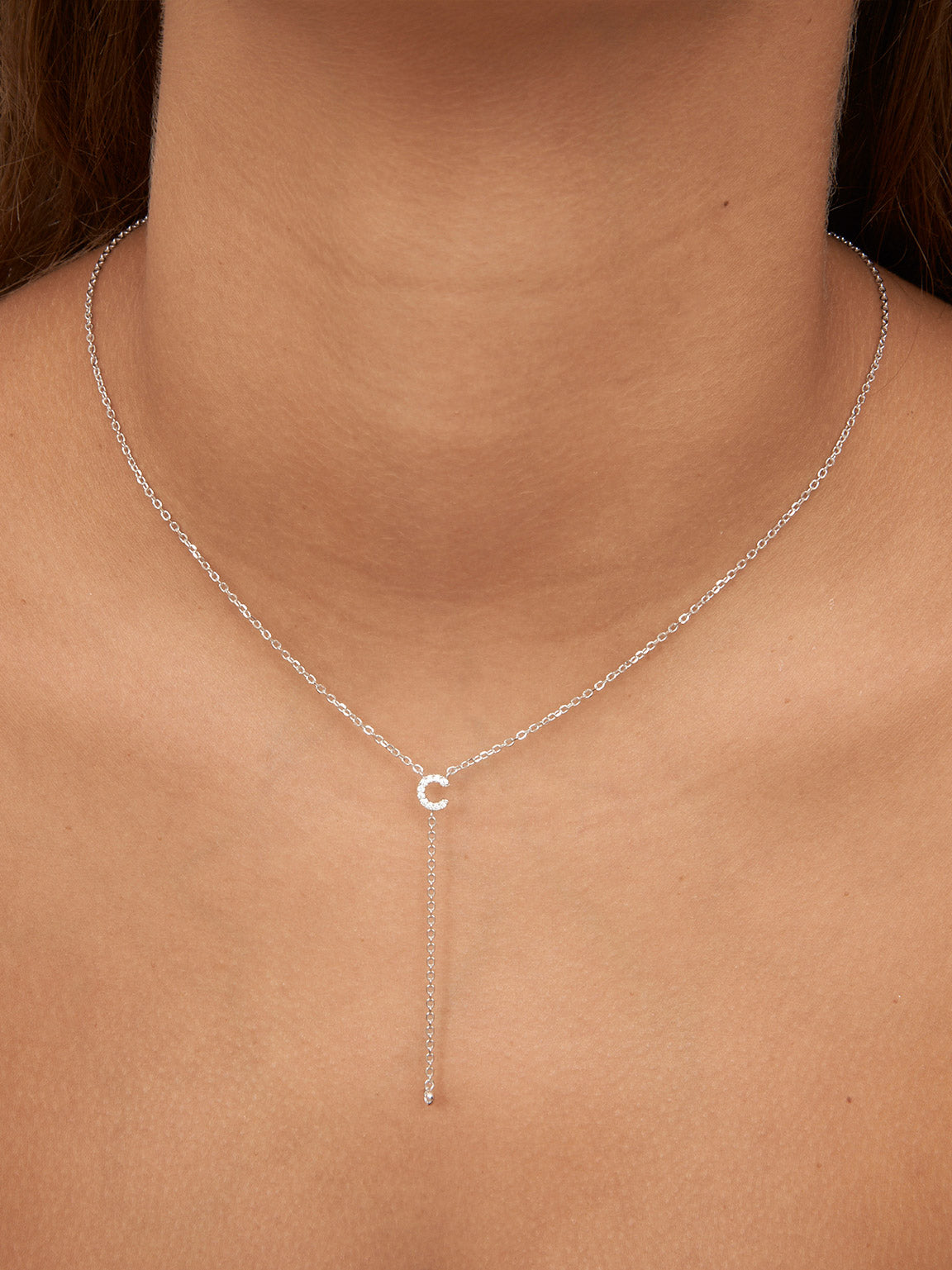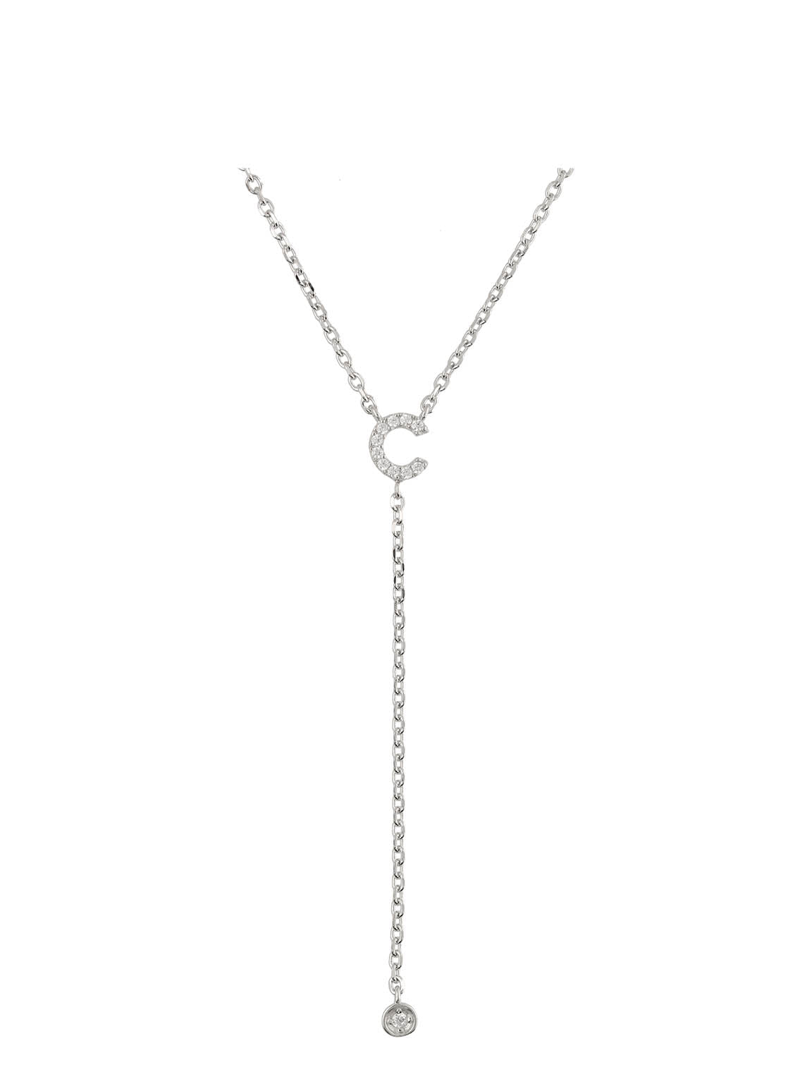Fio com pendente, Prata de lei 925, Zircónia de cultivo, Claro, Círculo, Letra, Feito à mão,, Prateado, comprimento do pendente: 6.0 cm, largura do pendente: 0.6 cm, 2.95 gramas.