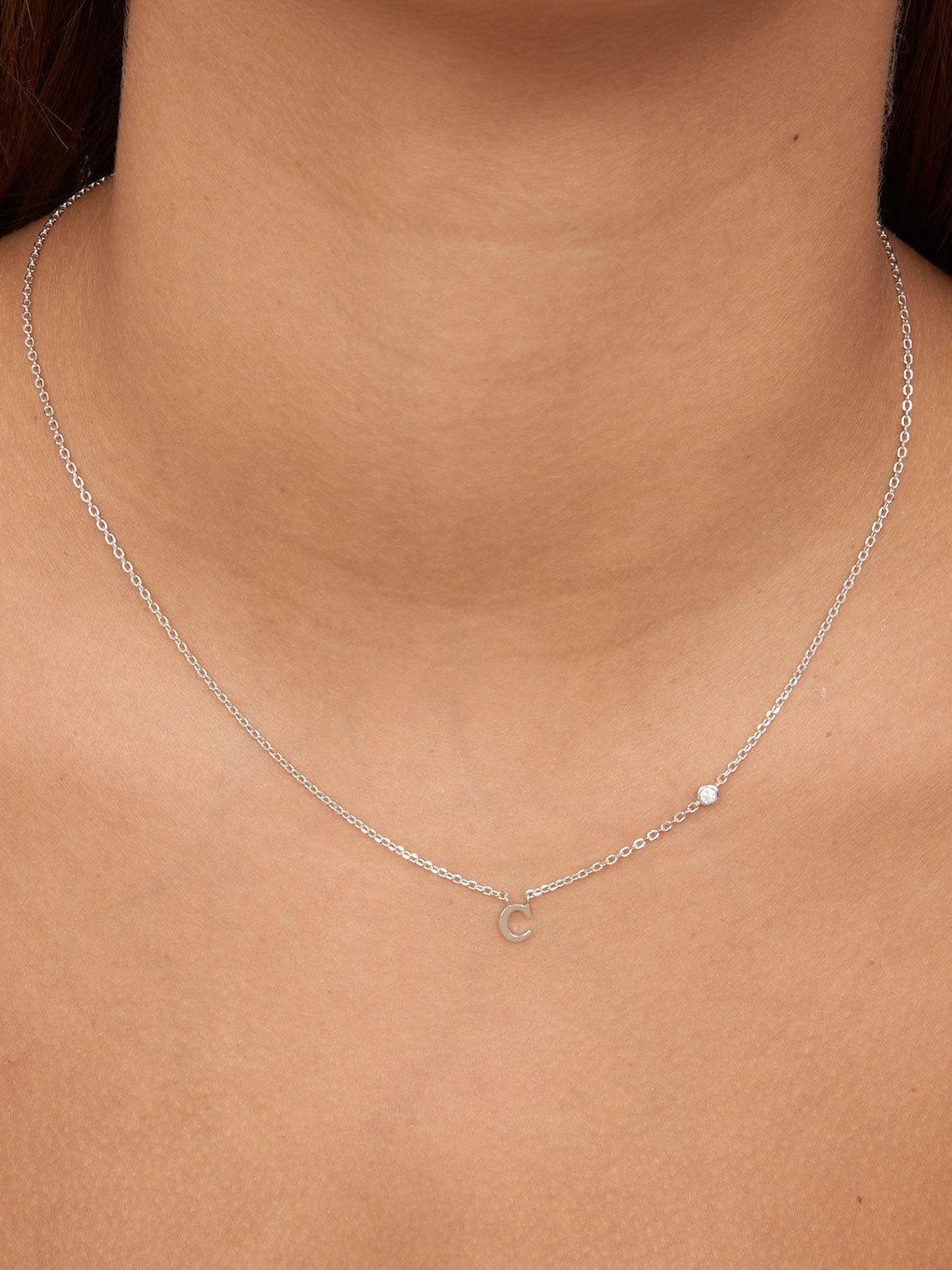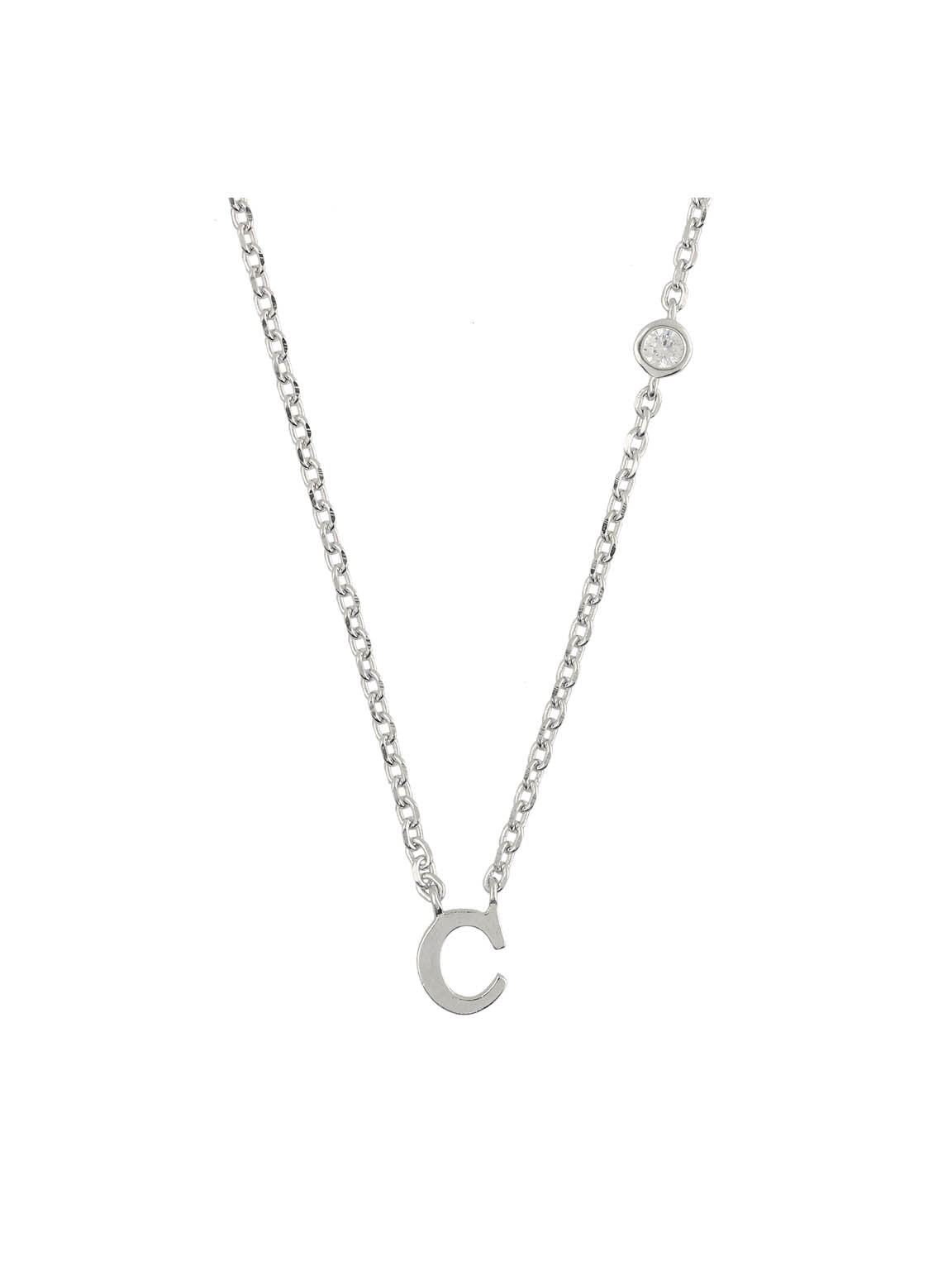 Fio com pendente, Prata de lei 925, Zircónia de cultivo, Claro, Círculo, Letra, Feito à mão,, Prateado, comprimento do pendente: 0.7 cm, largura do pendente: 0.5 cm, 2.78 gramas.