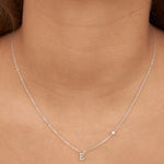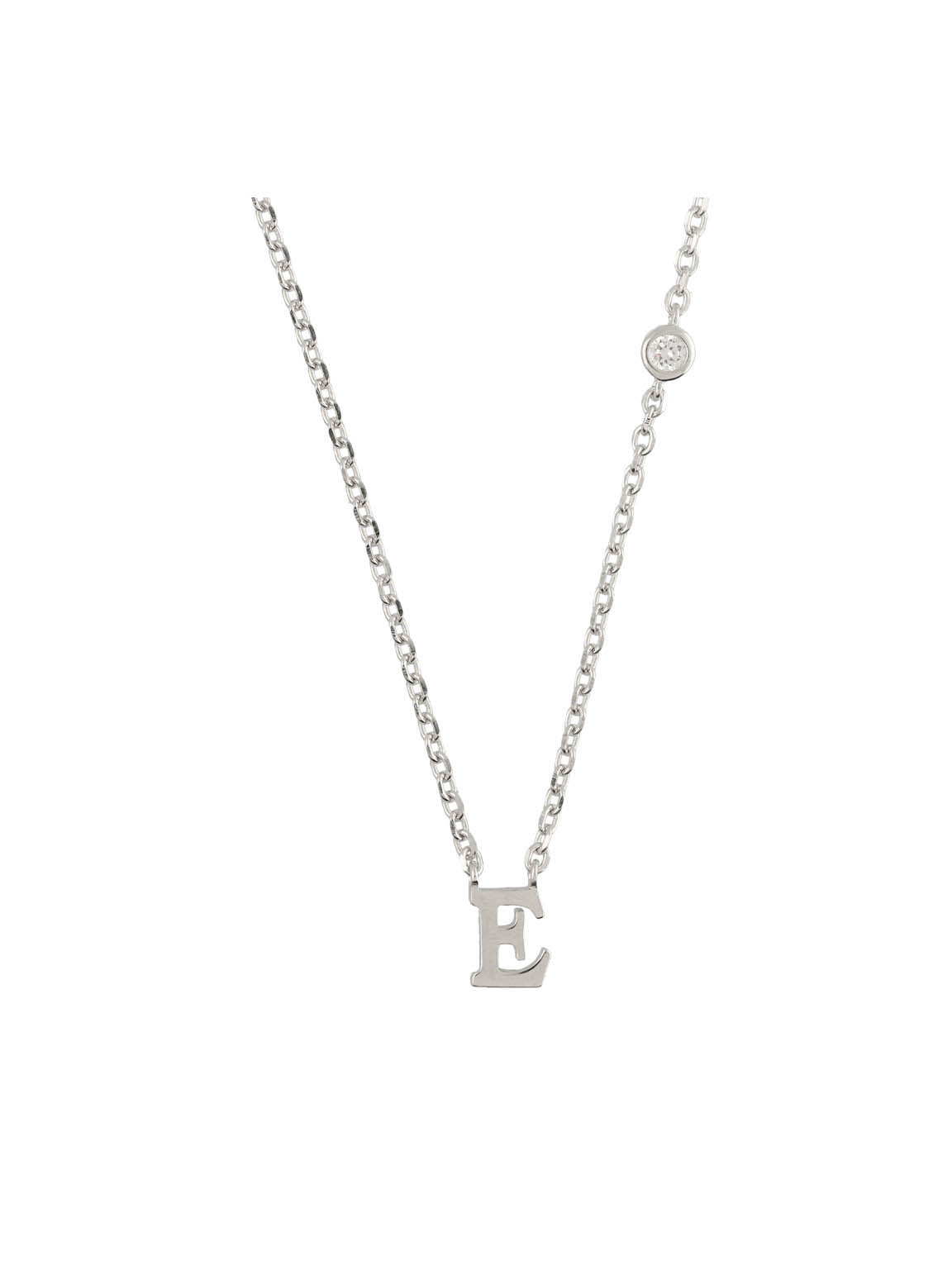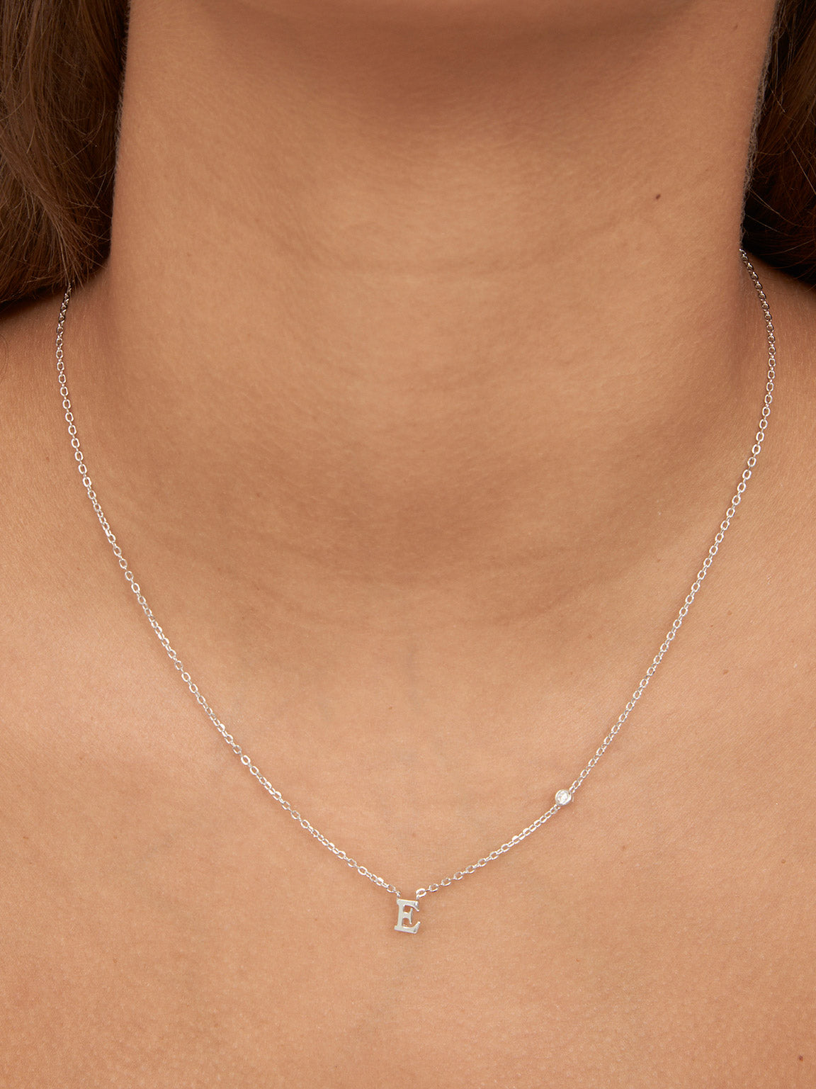 Fio com pendente, Prata de lei 925, Zircónia de cultivo, Claro, Círculo, Letra, Feito à mão,, Prateado, comprimento do pendente: 0.7 cm, largura do pendente: 0.5 cm, 2.80 gramas.