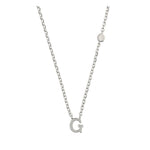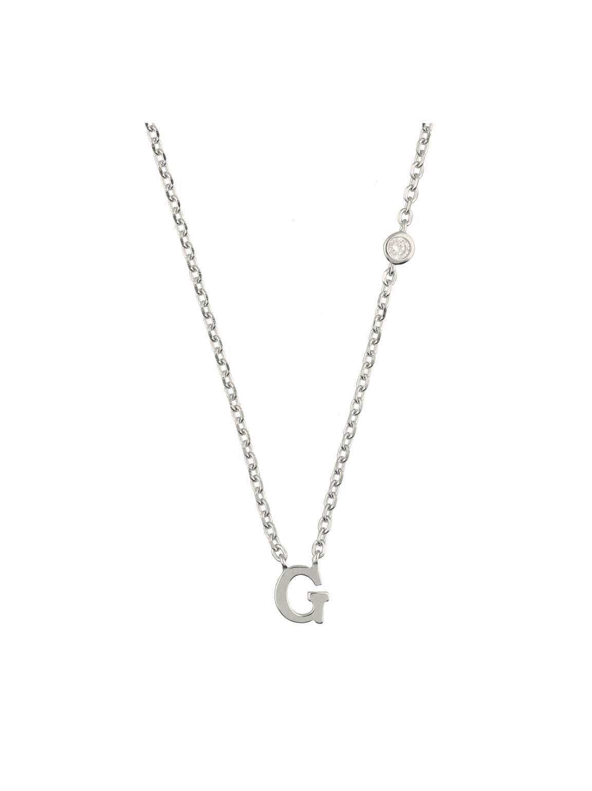 Fio com pendente, Prata de lei 925, Zircónia de cultivo, Claro, Círculo, Letra, Feito à mão,, Prateado, comprimento do pendente: 0.7 cm, largura do pendente: 0.5 cm, 2.79 gramas.