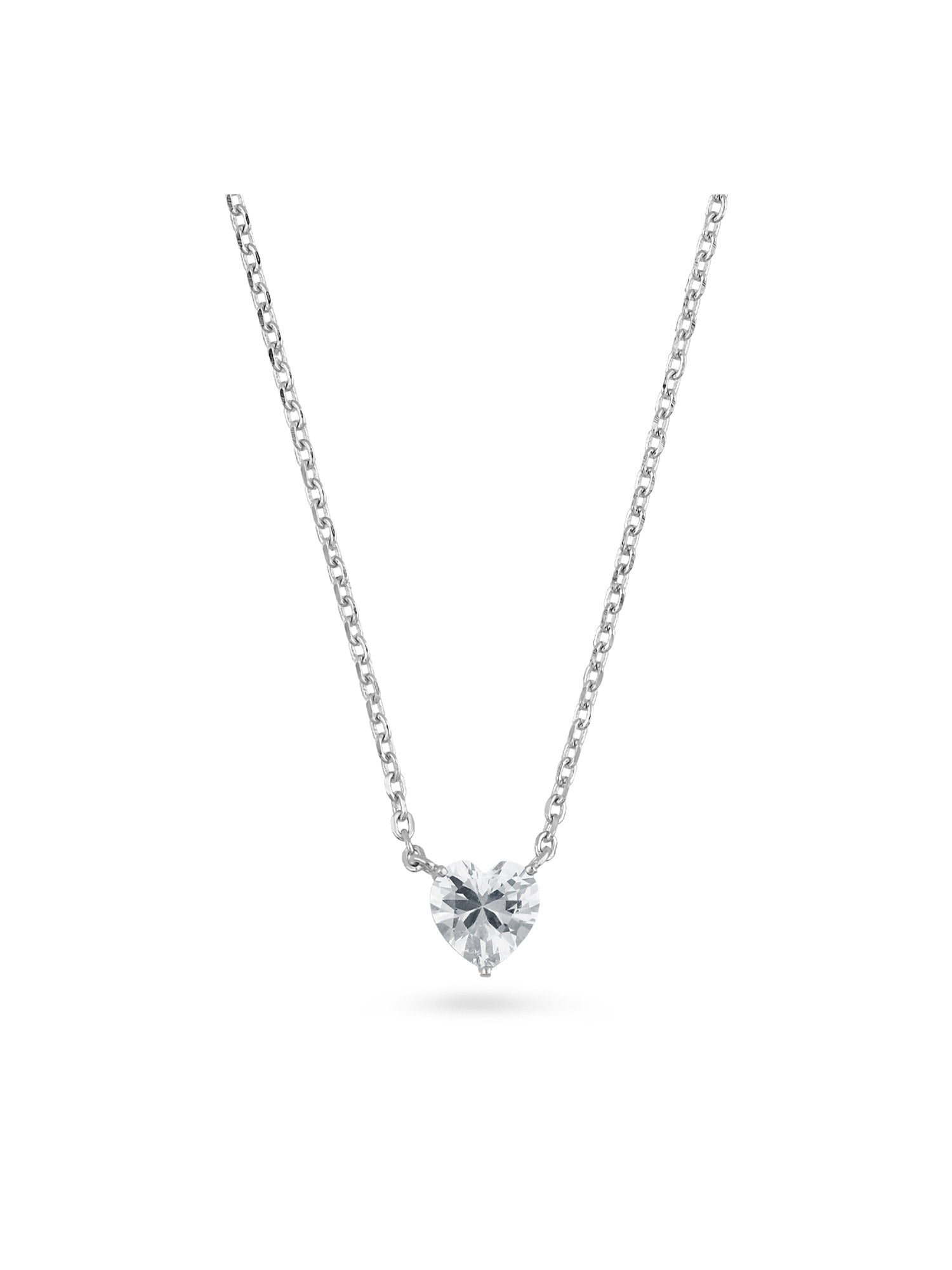 Fio com pendente, Prata de lei 925, Zircónia de cultivo, Claro, Coração, Feito à mão,, Prateado, comprimento do pendente: 0.8 cm, largura do pendente: 0.8 cm, 3.08 gramas.