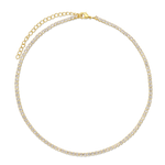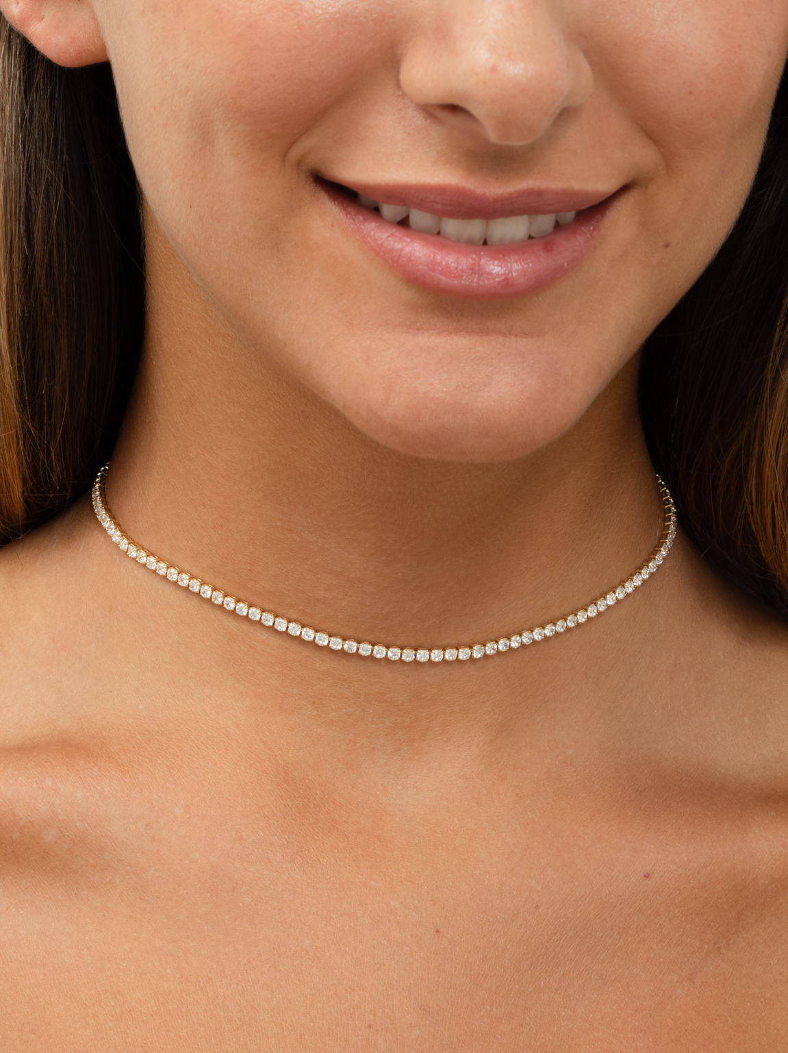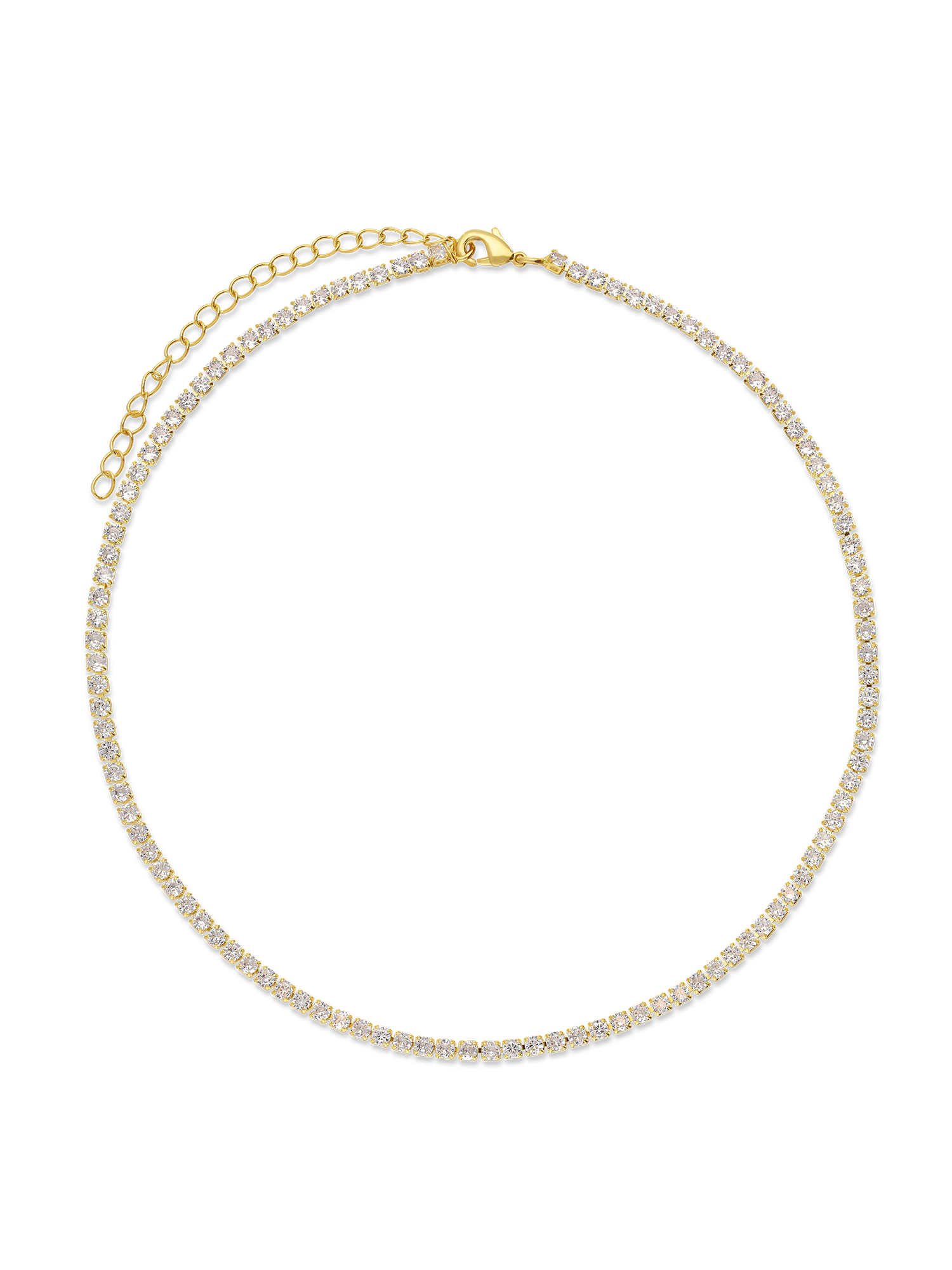 Colar choker, colar de tenis, Banhado a Ouro, Zircónia de cultivo, Claro, Círculo, Feito à mão,, Dourado, 7.14 gramas.