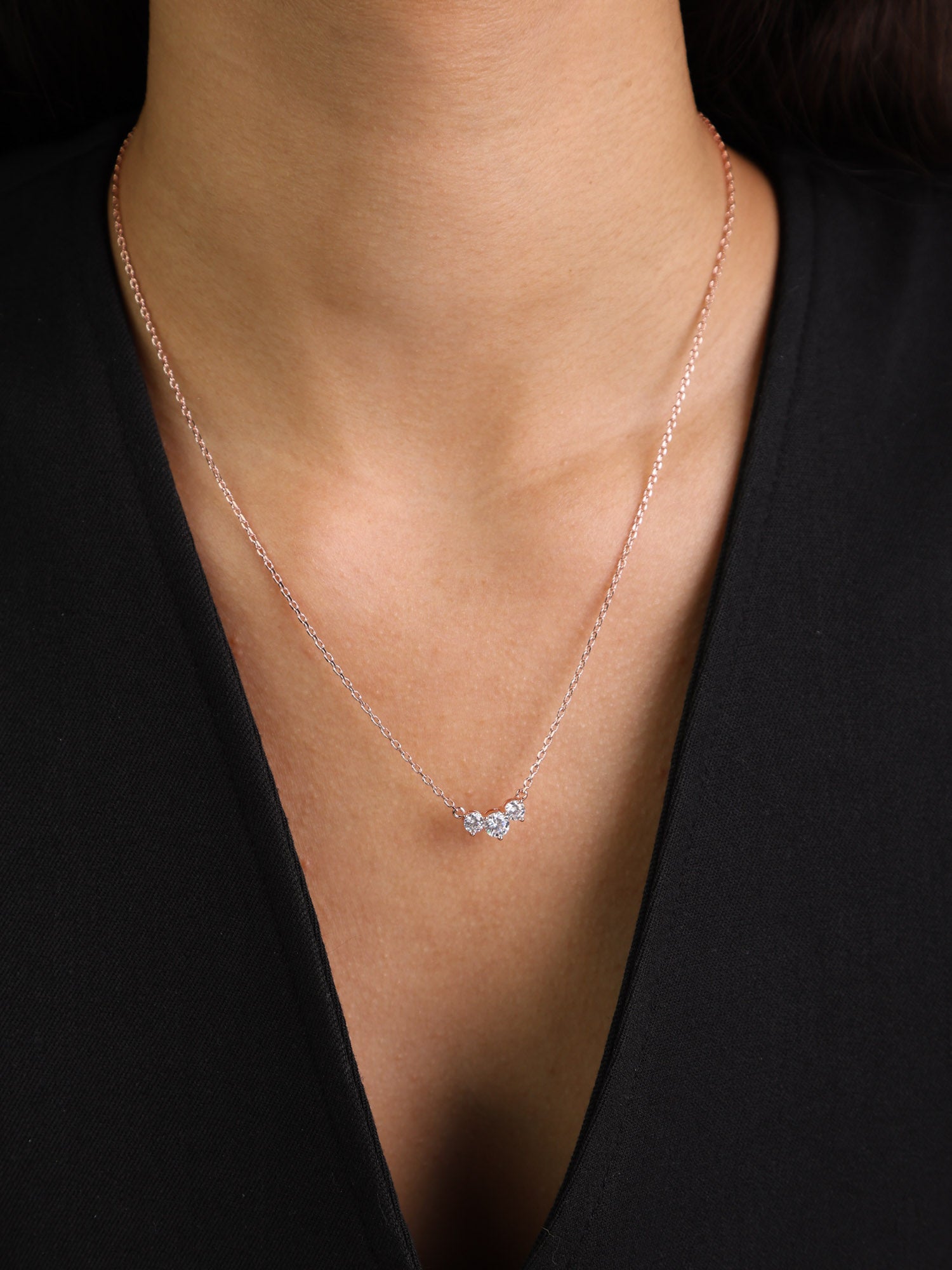 Fio com pendente banhado a ouro rosa com zircónia