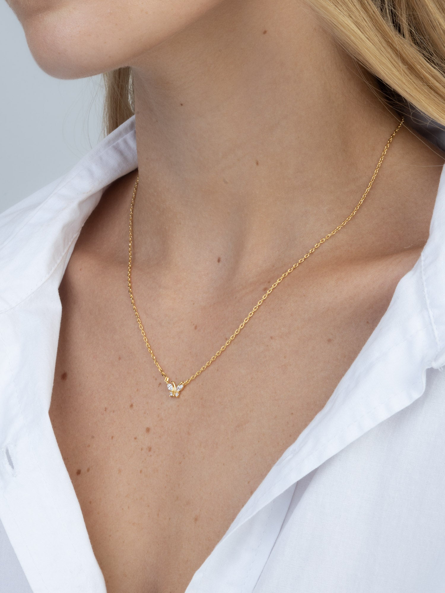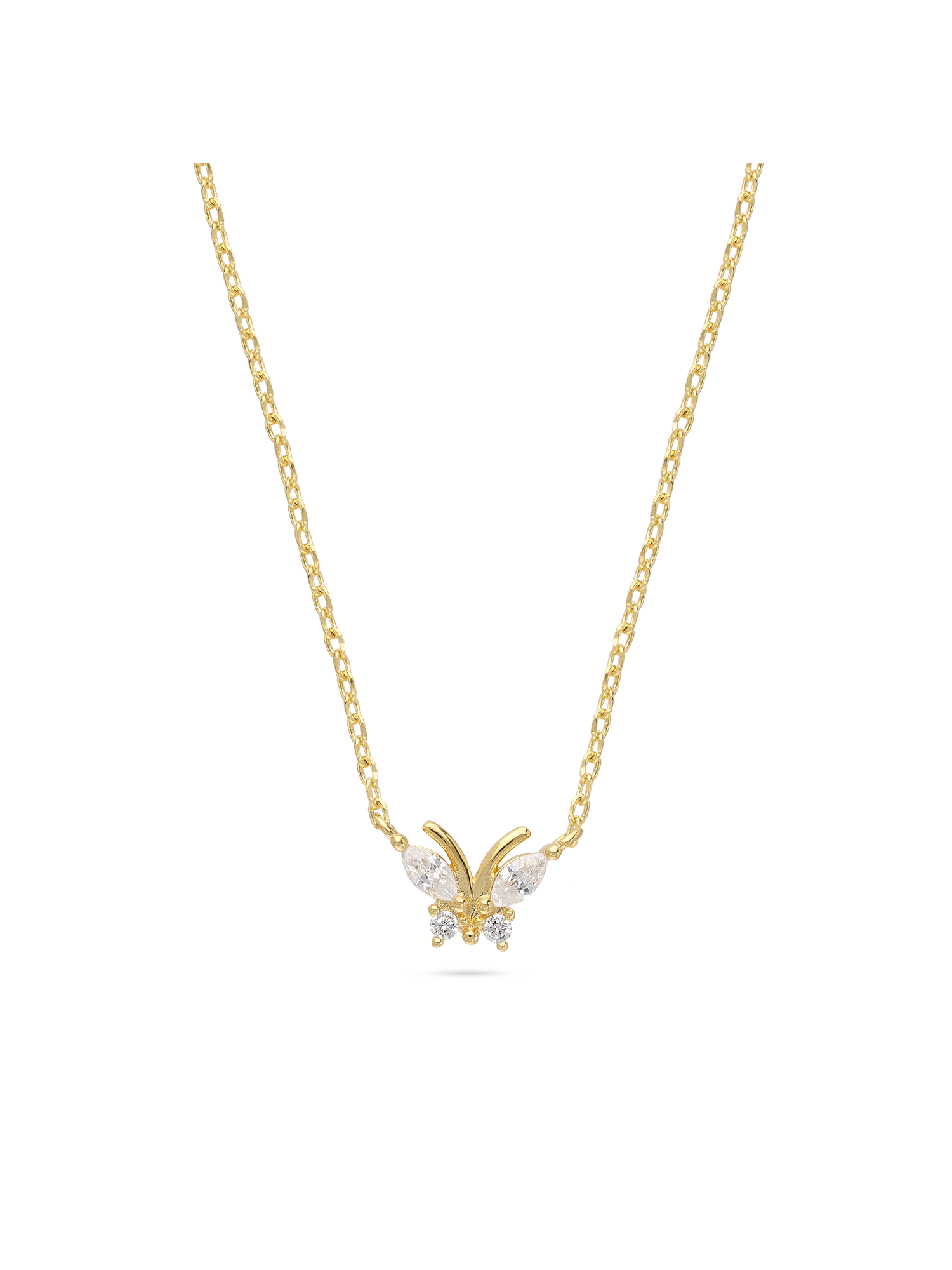 Fio com pendente, Banhado a Ouro, Zircónia de cultivo, Claro, Borboleta, Feito à mão,, Dourado, comprimento do pendente: 0.7 cm, largura do pendente: 1.0 cm, 2.52 gramas.