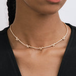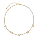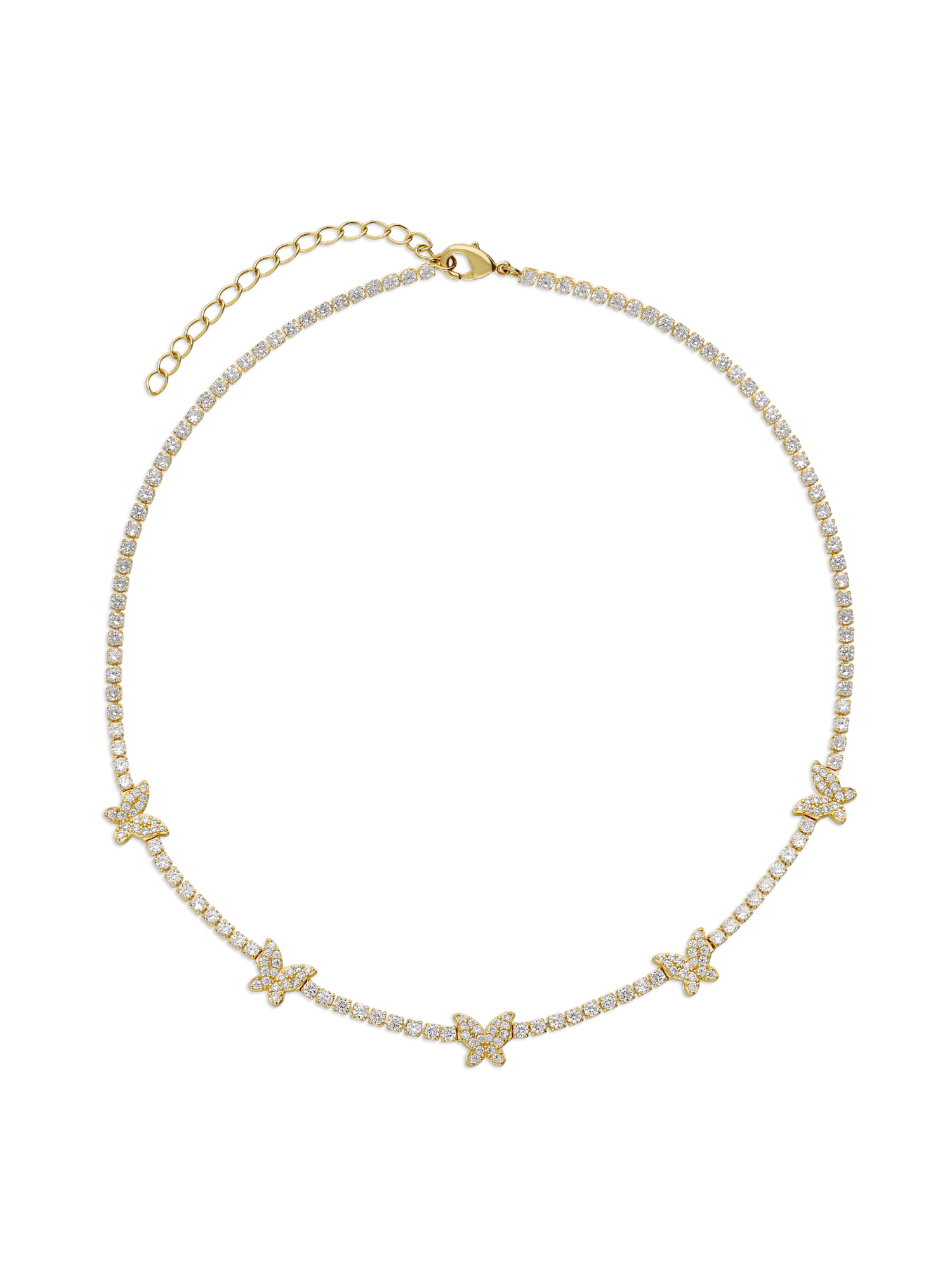 Colar choker tenis banhado a ouro com borboletas e zircónia