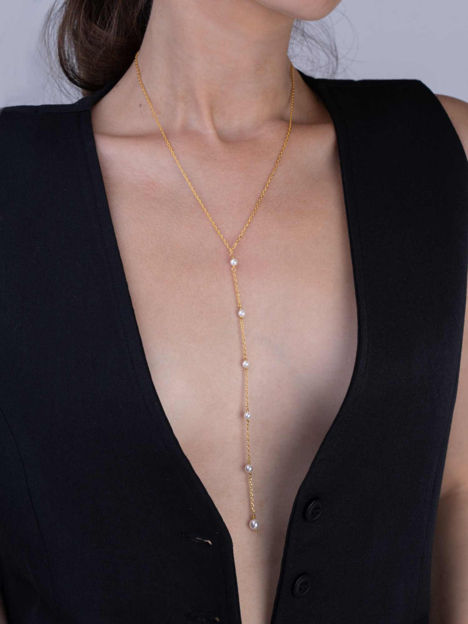 Fio com pendente, Banhado a Ouro, Swarovski de cultivo, Branco, Círculo, Feito à mão,, Dourado, comprimento do pendente: 16.0 cm, largura do pendente: 0.6 cm, 3.96 gramas.