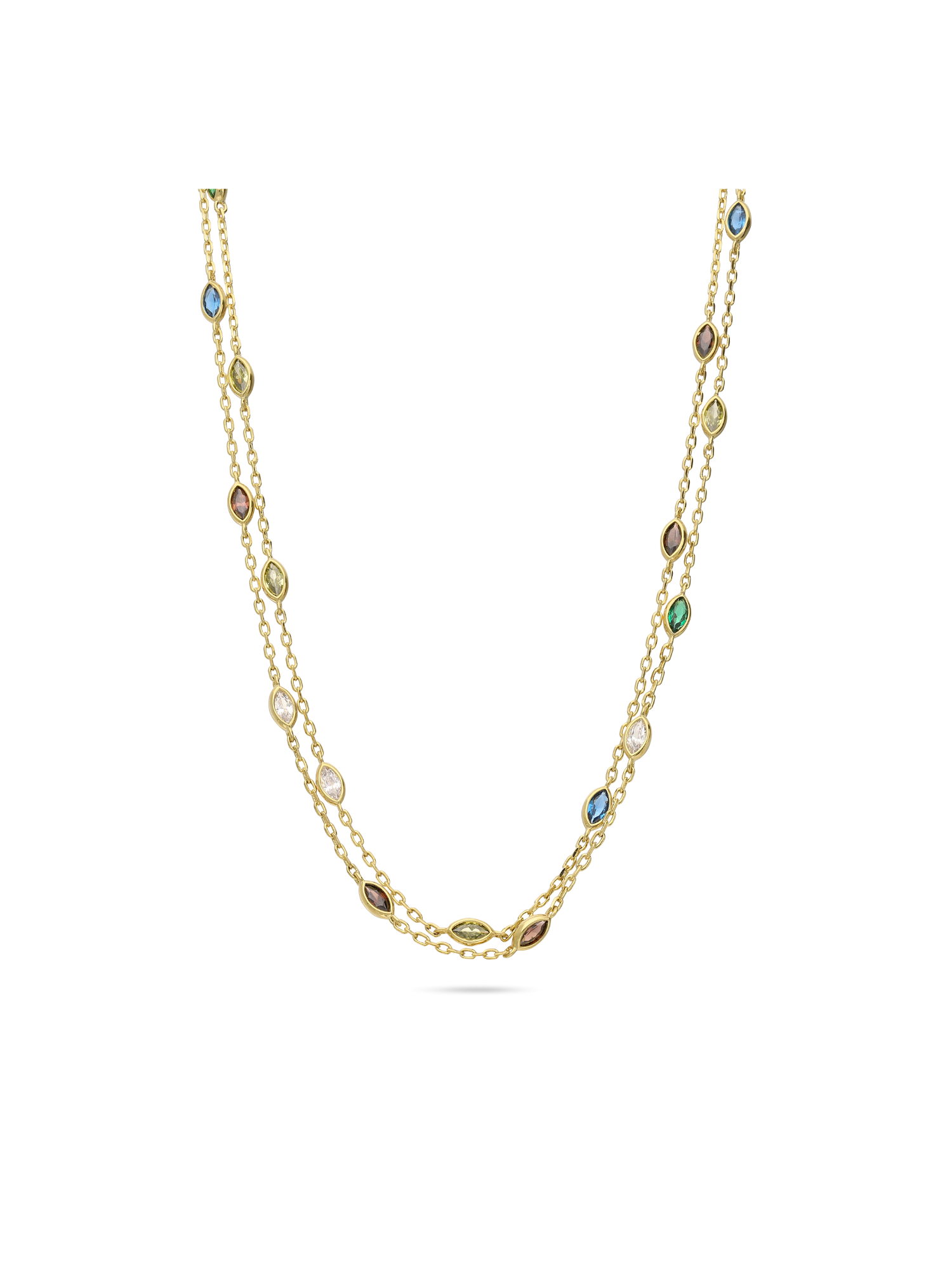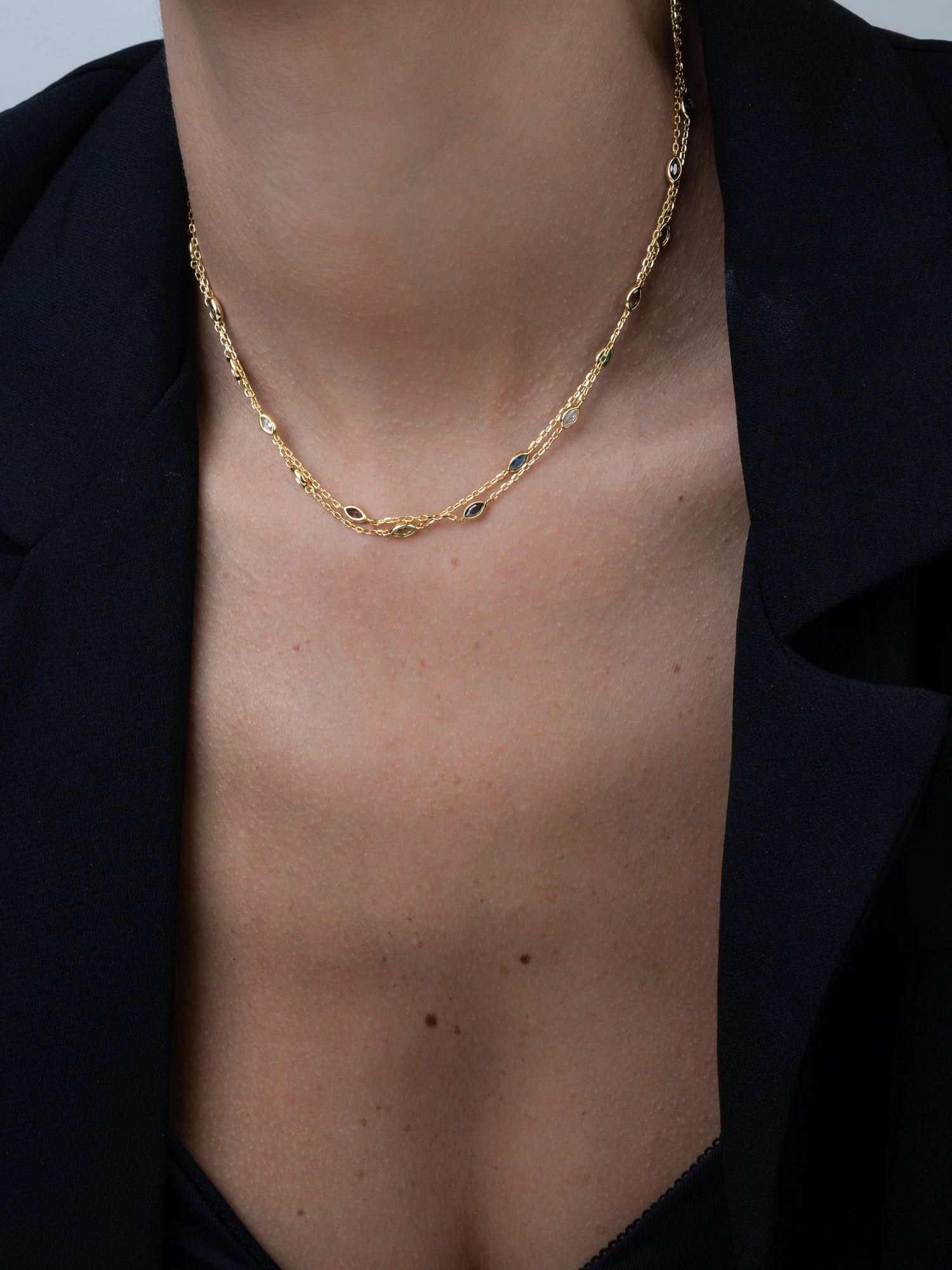 Colar duplo com detalhes banhado a ouro com zircónia colorida