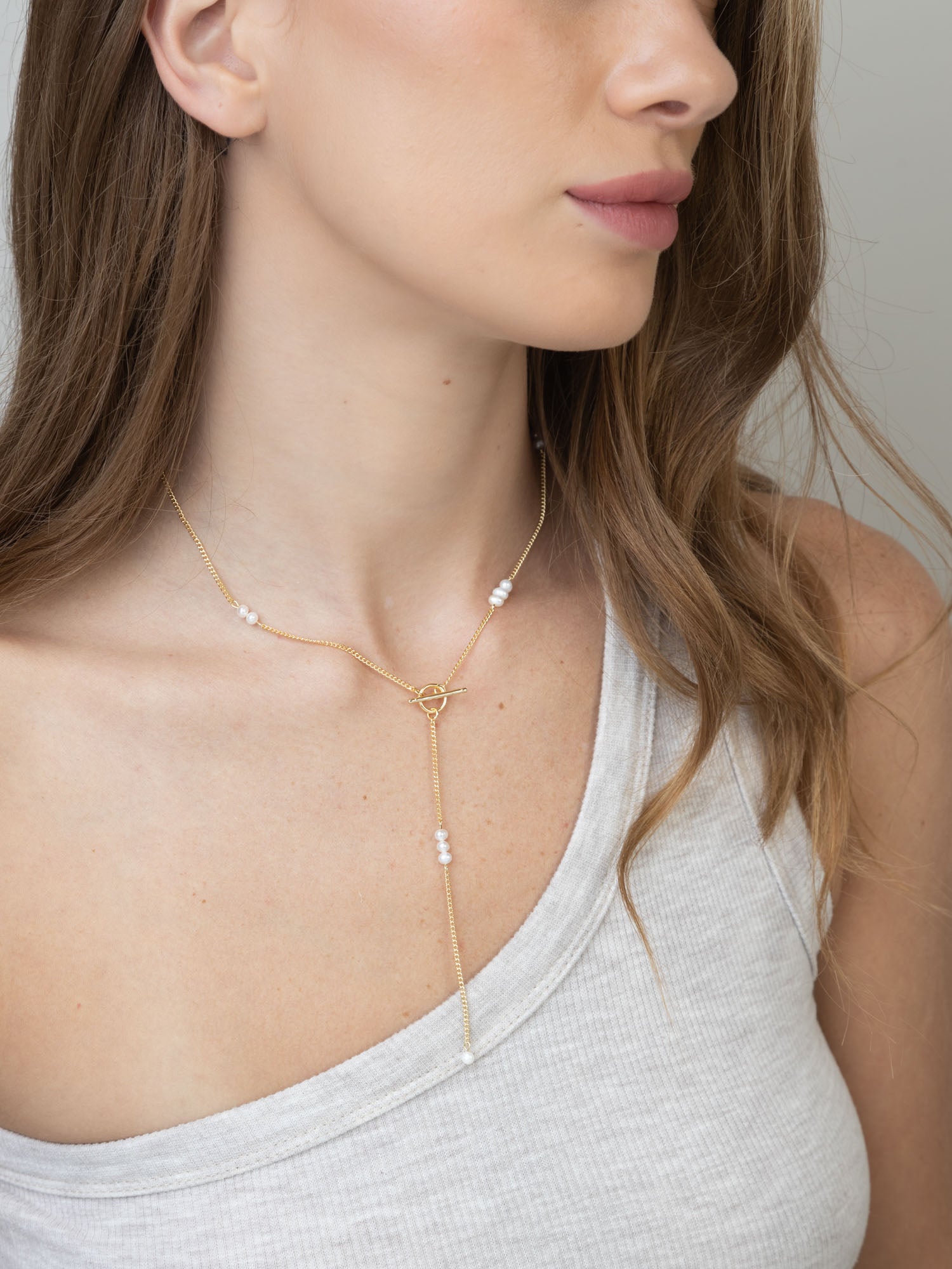 Fio com pendente, Banhado a Ouro, Pérola cultivada