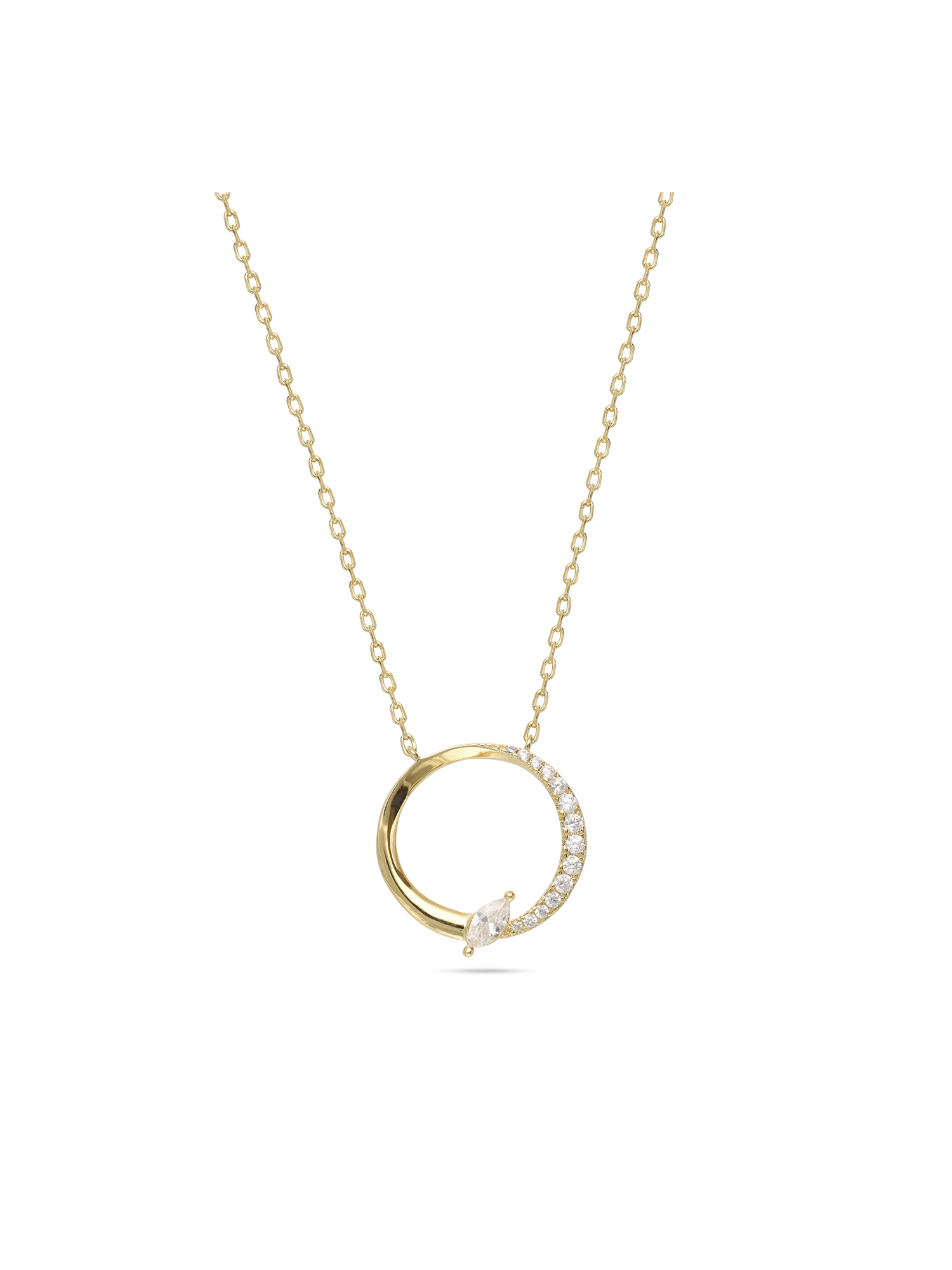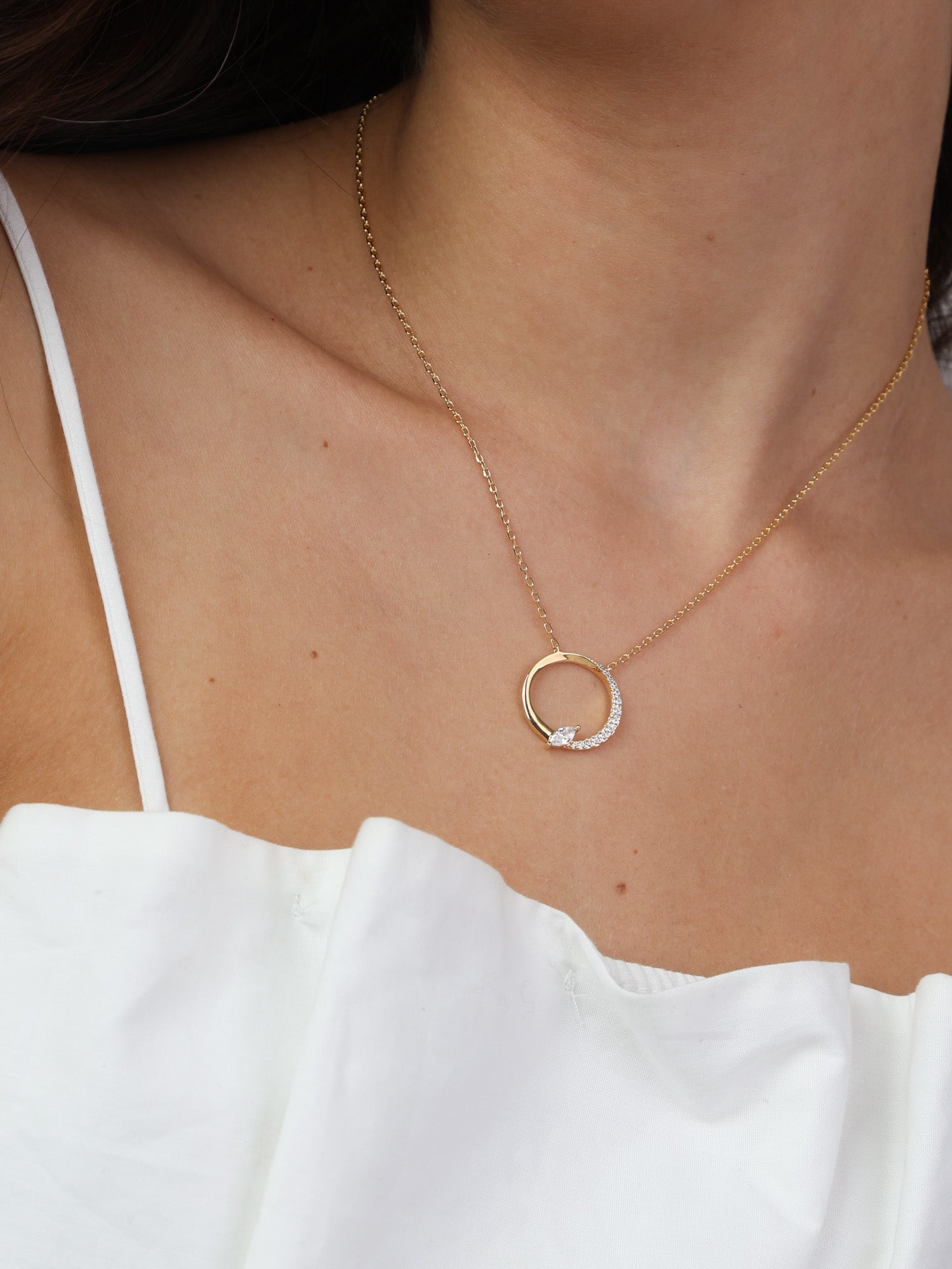 Fio com pendente círculo banhado a ouro com zircónia