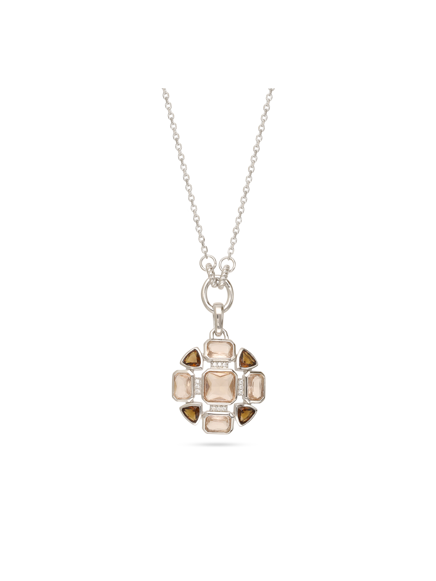 Fio com pendente, Prata de lei 925, Zirc?nia de cultivo, Colorido, Variedade de formas, Feito ? m?o, Prateado, comprimento do pendente: 4.0 cm, largura do pendente: 2.1 cm, 8.11 gramas.
