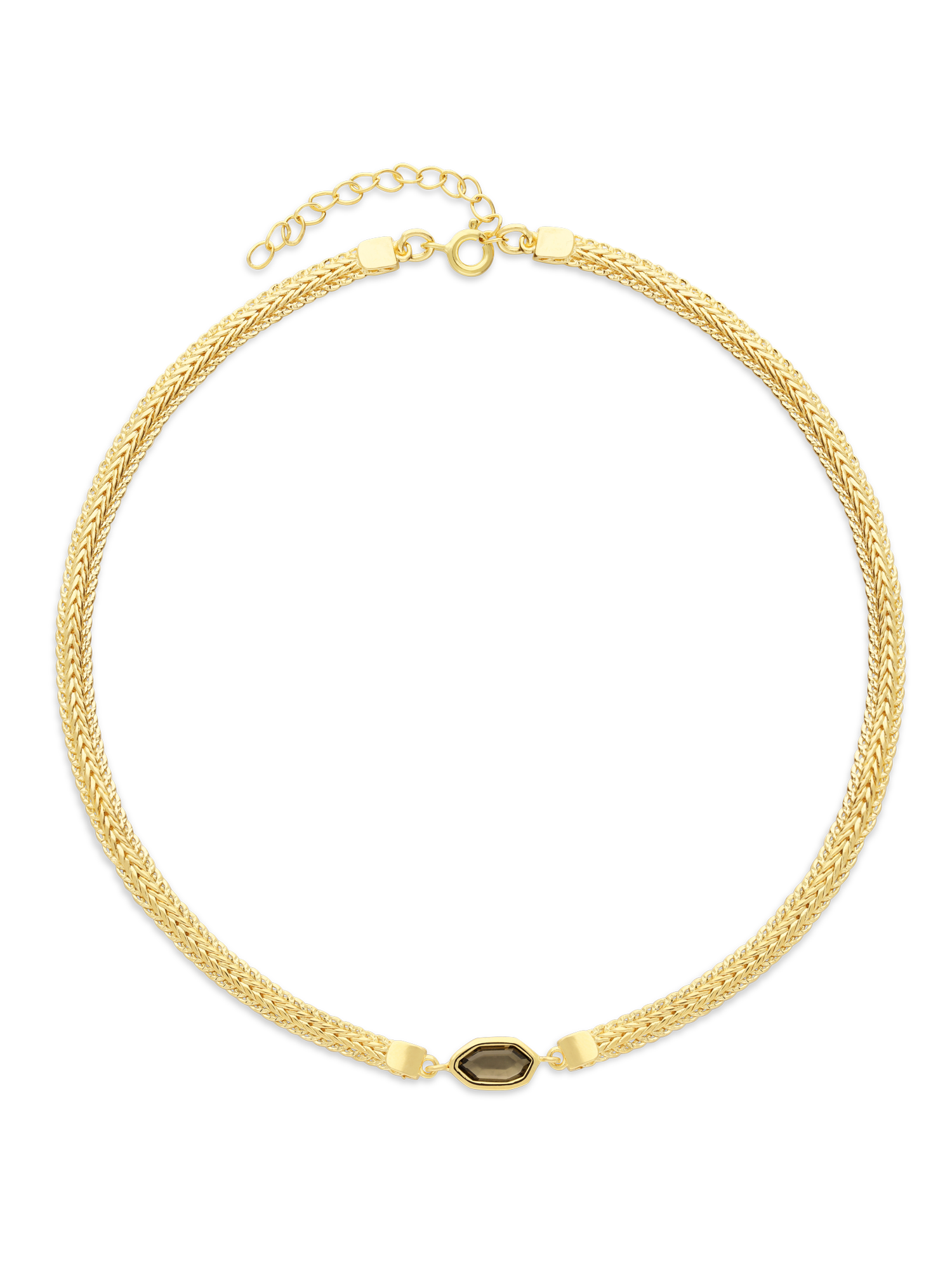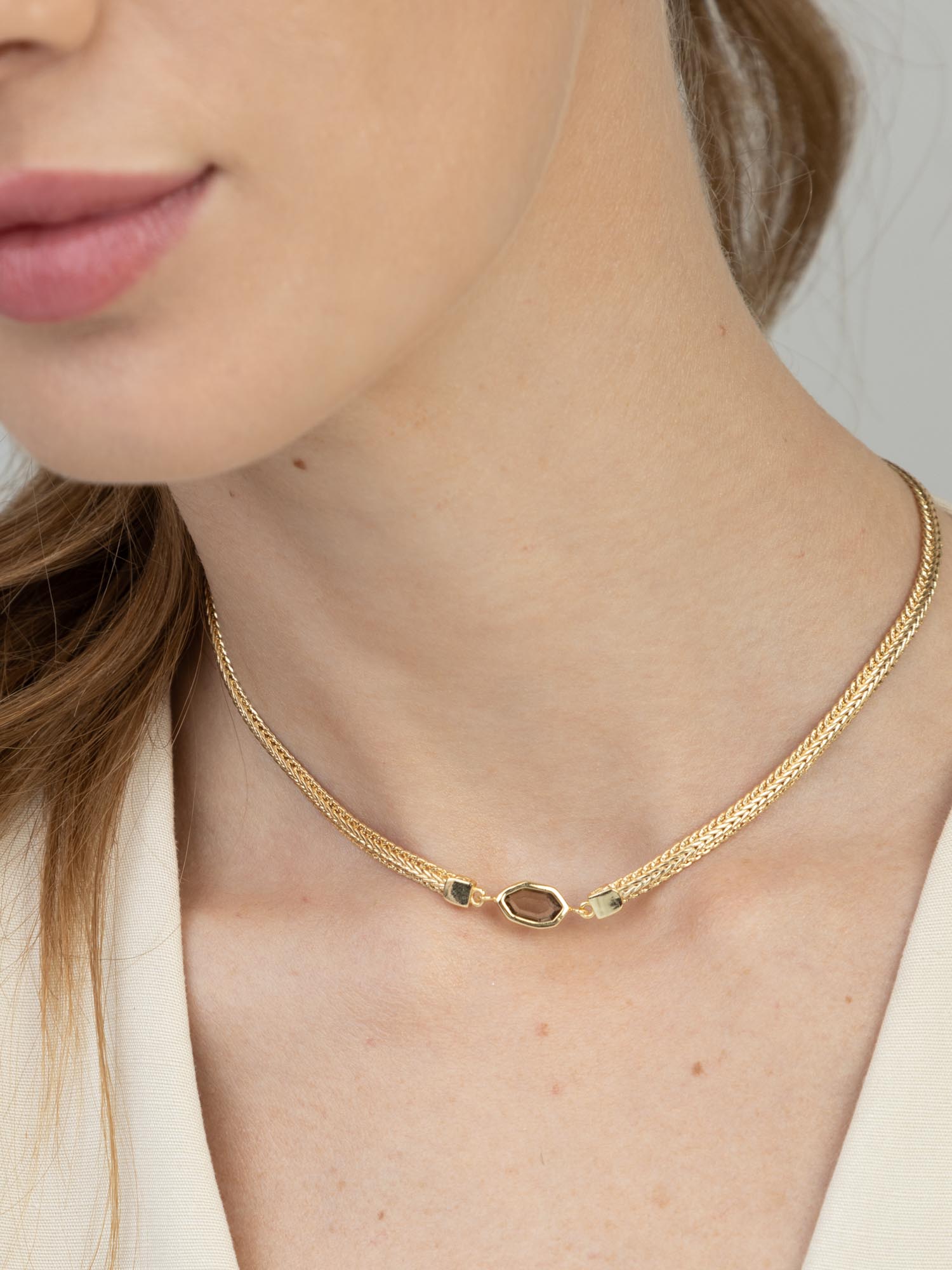 Colar choker, Banhado a Ouro, Vidro cristal, Castanho, Variedade de formas, Feito à mão,, Dourado, 8.30 gramas.