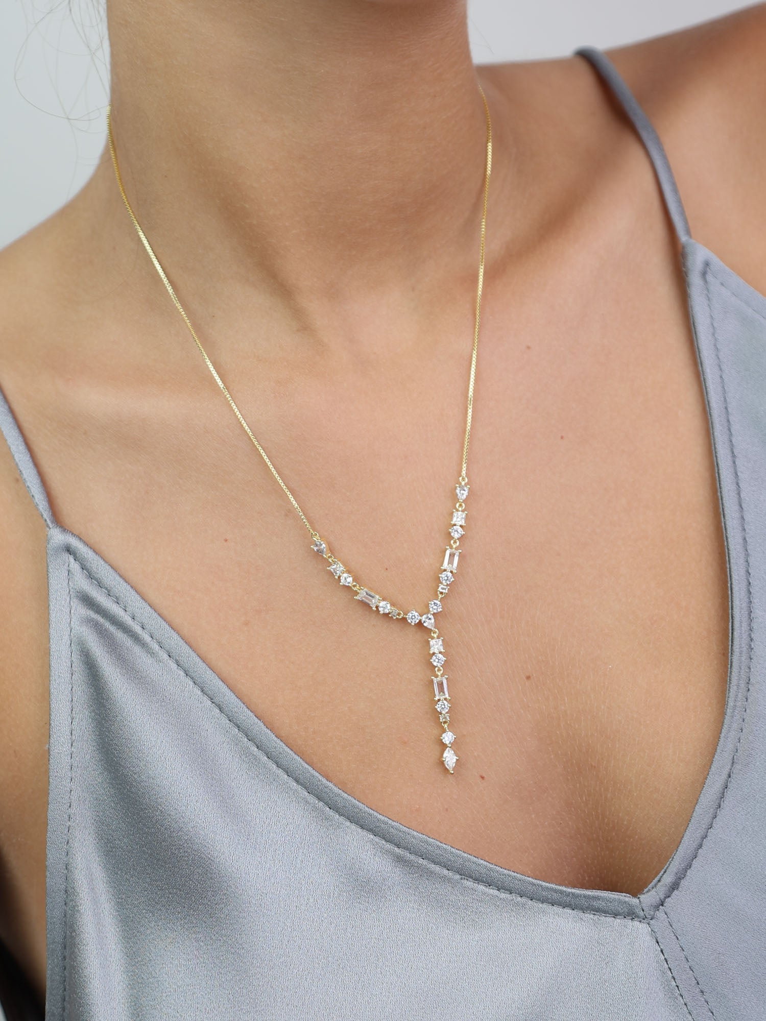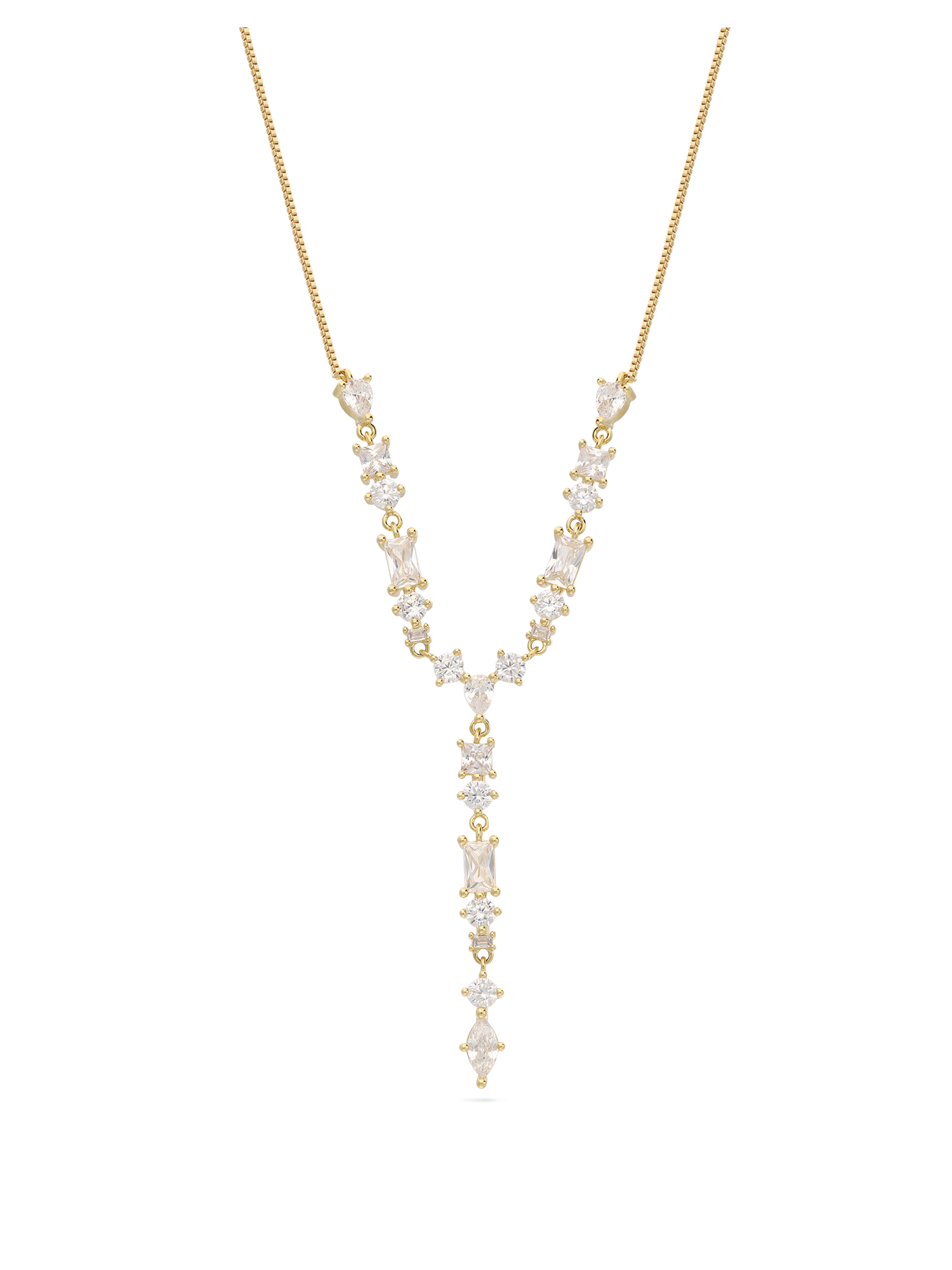 Corrente de gravata, Banhado a Ouro, Zircónia de cultivo, Claro, Variedade de formas, Feito à mão,, Dourado, comprimento do pendente: 3.5 cm, largura do pendente: 0.4 cm, 5.99 gramas.