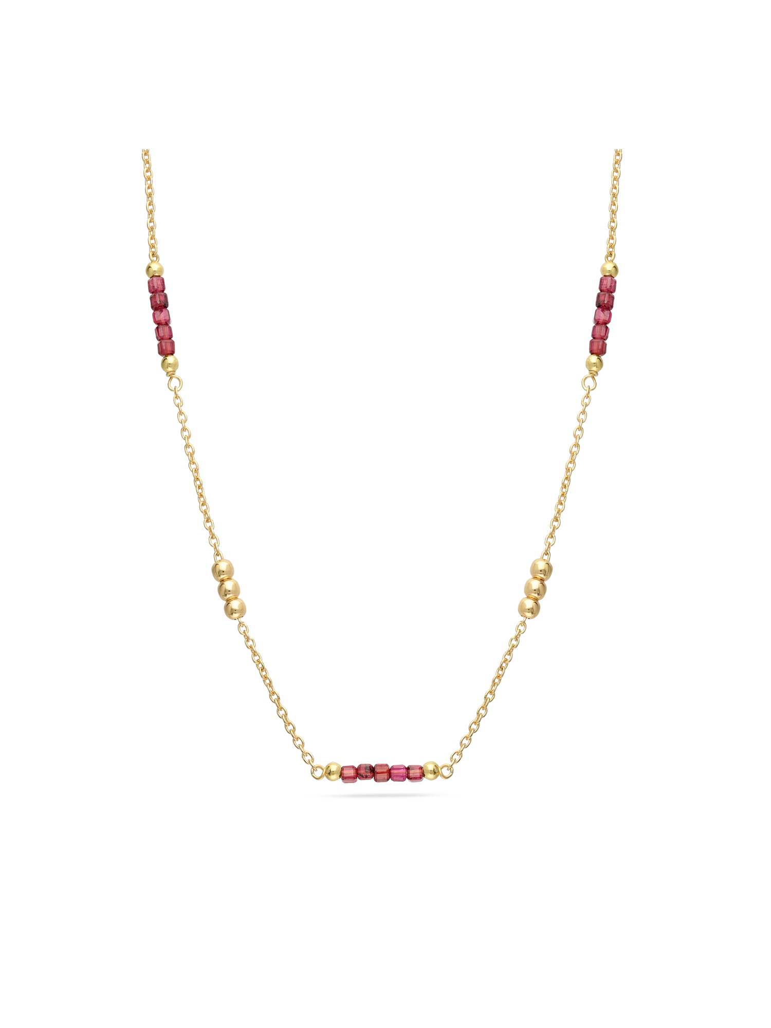 Colar de pedras banhado a ouro com granada vermelha