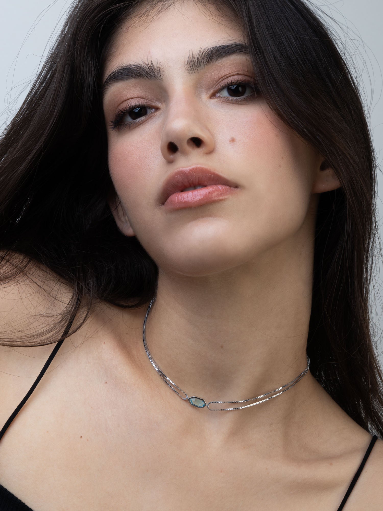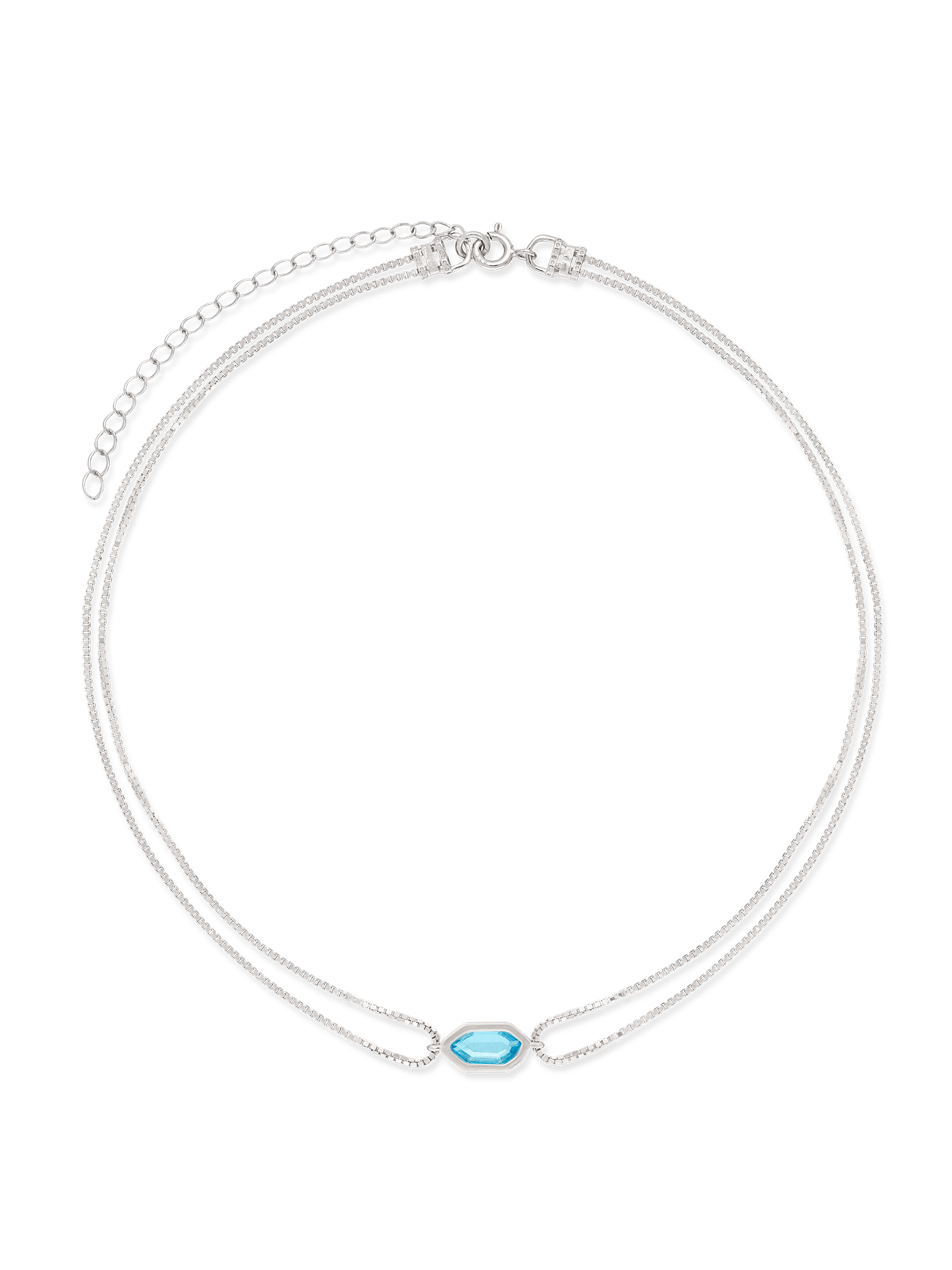 Explore a beleza serena e sofisticada do Colar Choker em Prata de Lei 925. Feito à mão com um cristal de vidro azul céu em formato hexagonal, este colar transmite um toque de frescor e elegância. Perfeito para quem busca uma peça única e contemporânea, que acrescenta um brilho suave e encantador ao seu estilo.