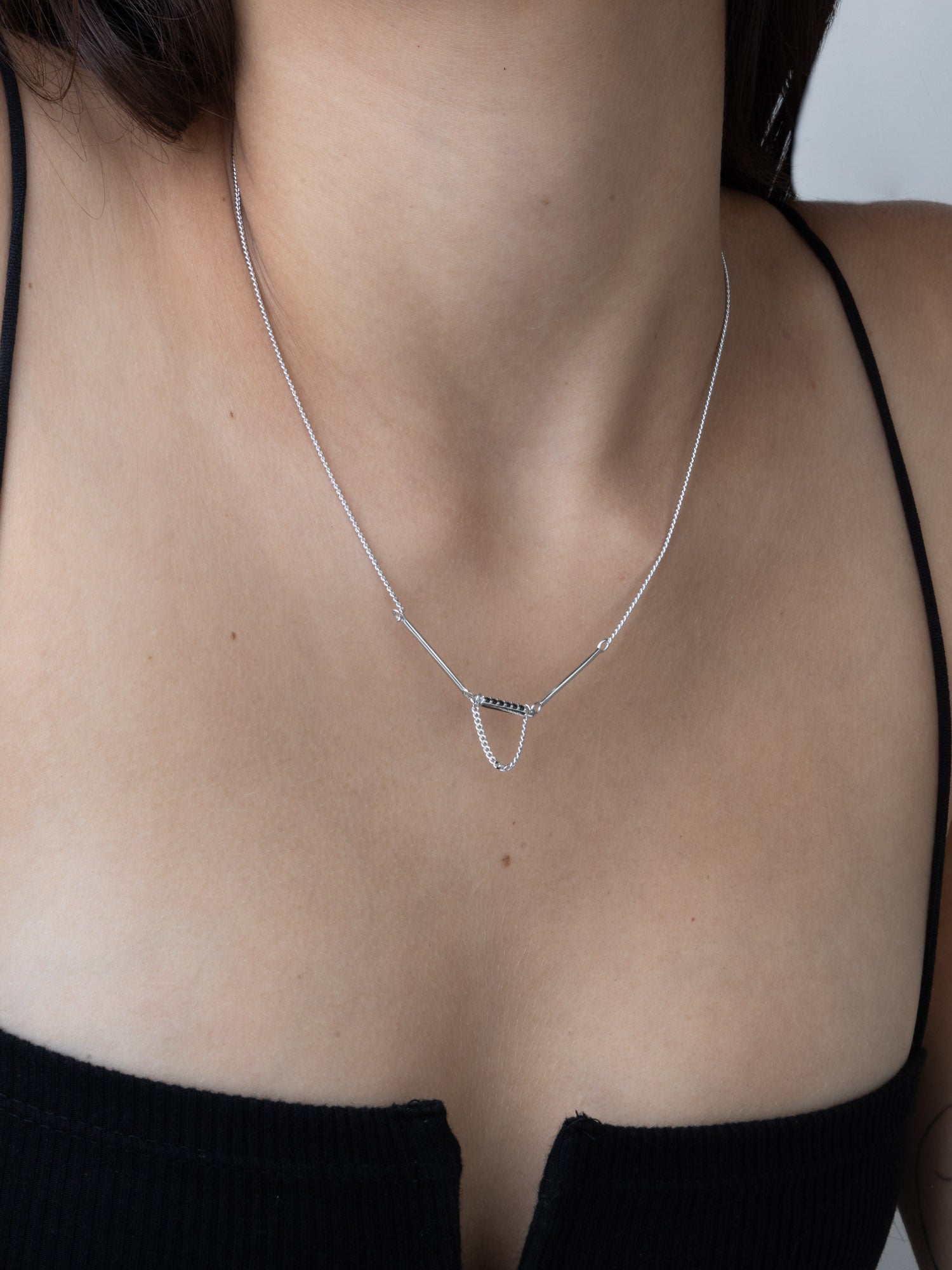 Cadeia de elementos, Prata de lei 925, Zircónia de cultivo, Preto, Quadrado, Feito à mão,, Prateado, comprimento do pendente: 1.5 cm, largura do pendente: 1.1 cm, 3.73 gramas.