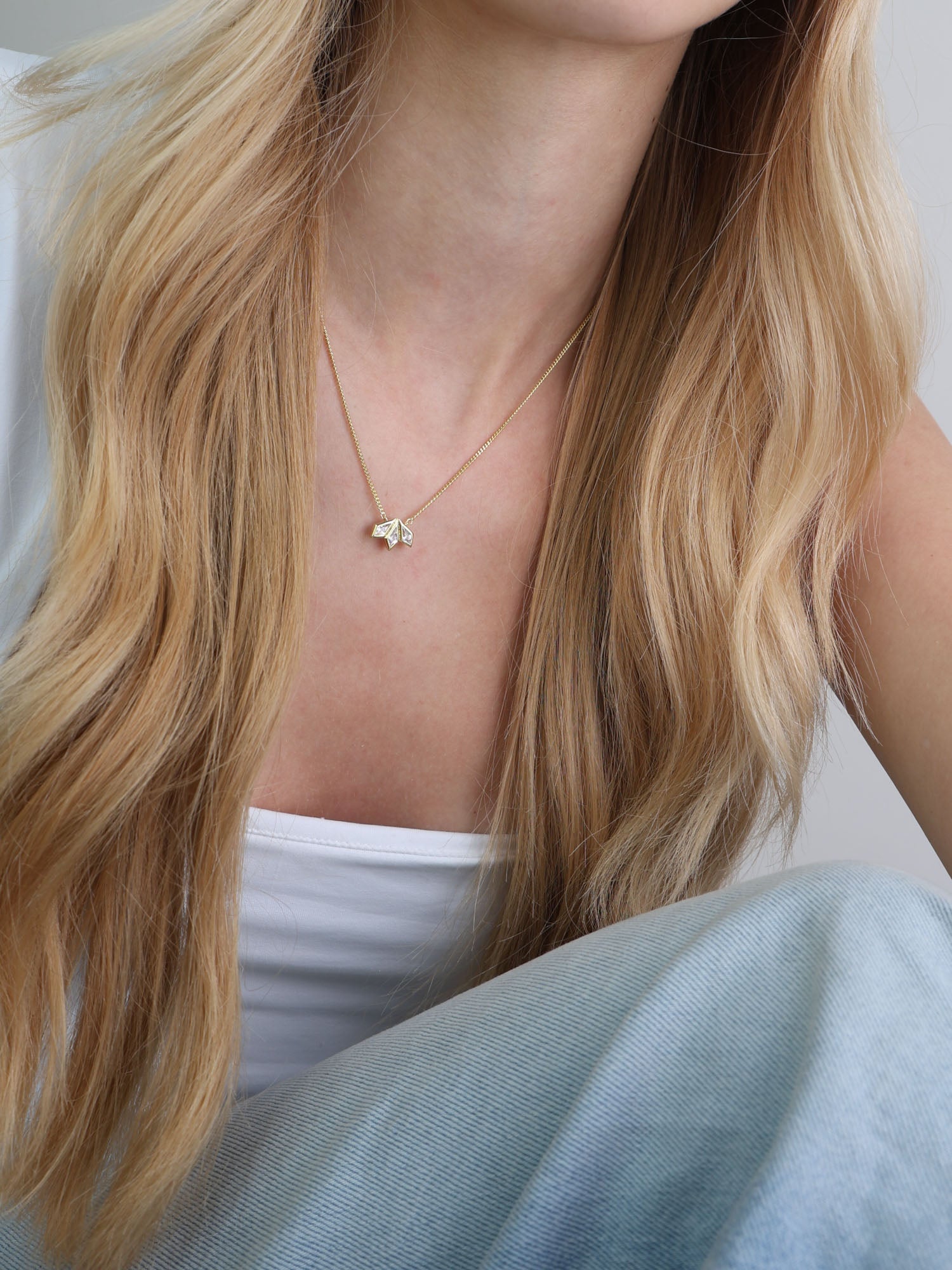 Fio com pendente, Banhado a Ouro, Zircónia de cultivo, Claro, Pipa, Feito à mão, Dourado, largura do pendente: 1.2 cm, comprimento do pendente: 0.8 cm, 3.18 gramas.