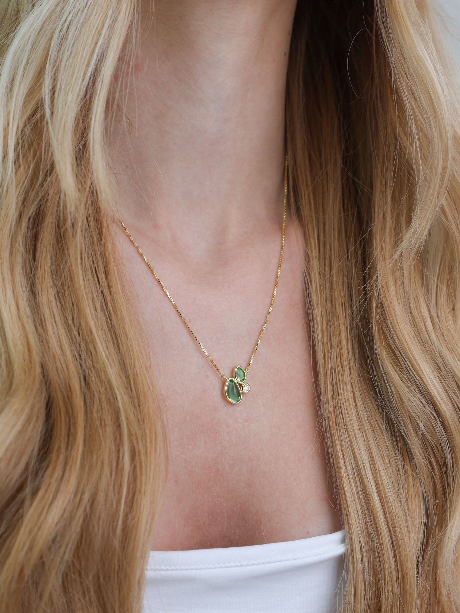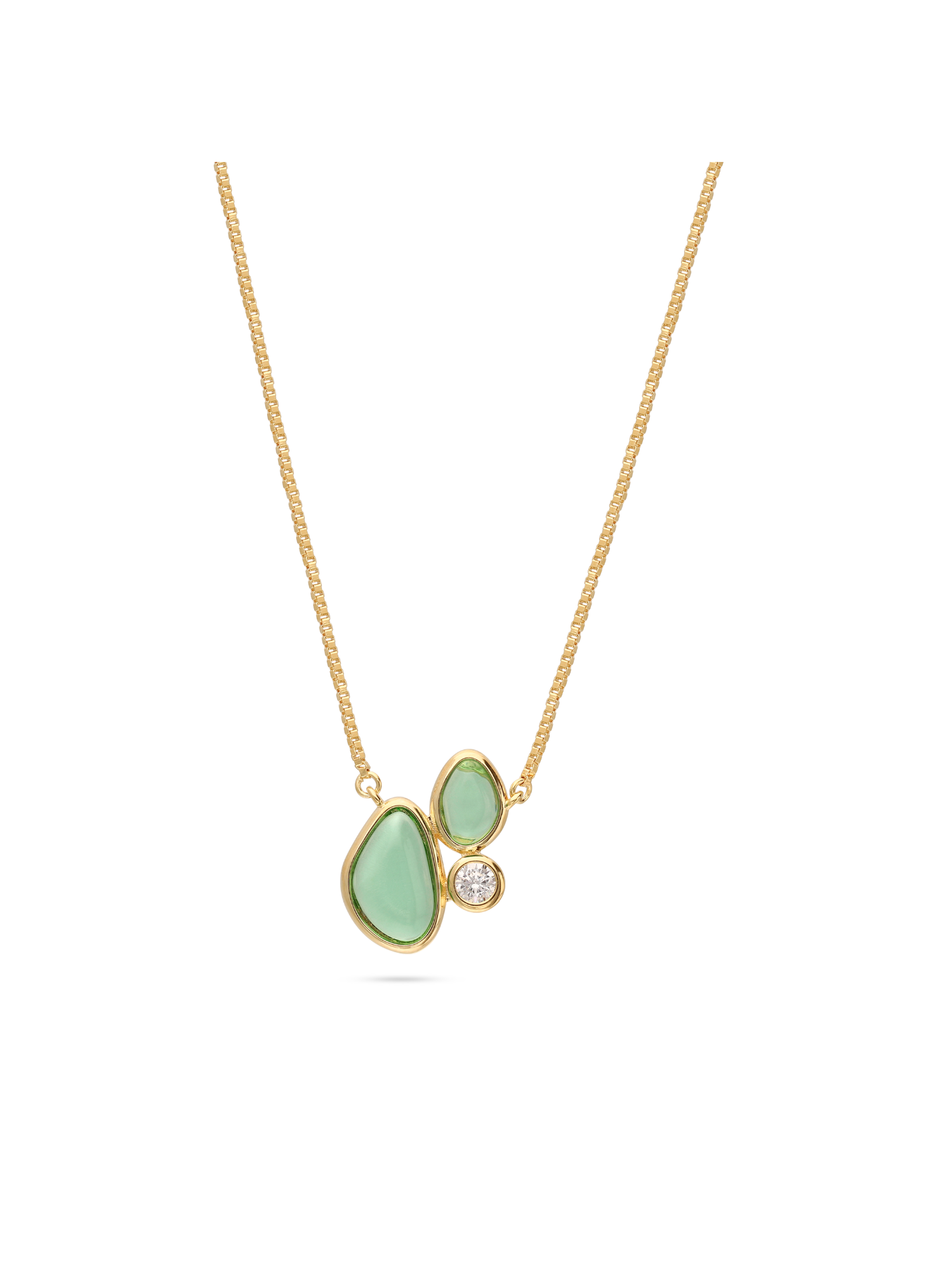 Fio com pendente banhado a ouro com zircónia e cristal verde