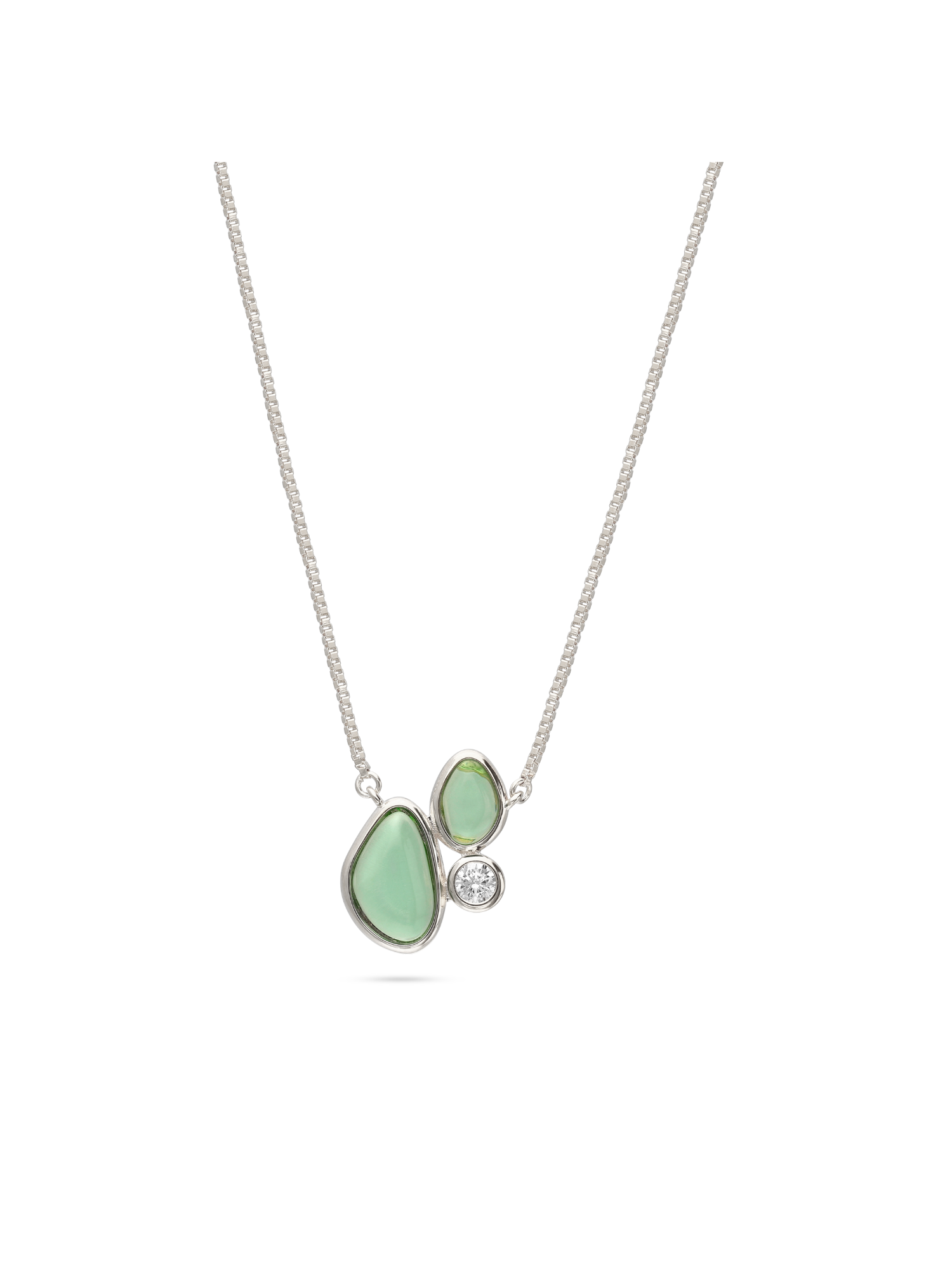 Fio com pendente, Prata de lei 925, Zircónia de cultivo, Vidro cristal, Verde, Claro, Seixos, Feito à mão,, Prateado, 3.30 gramas.