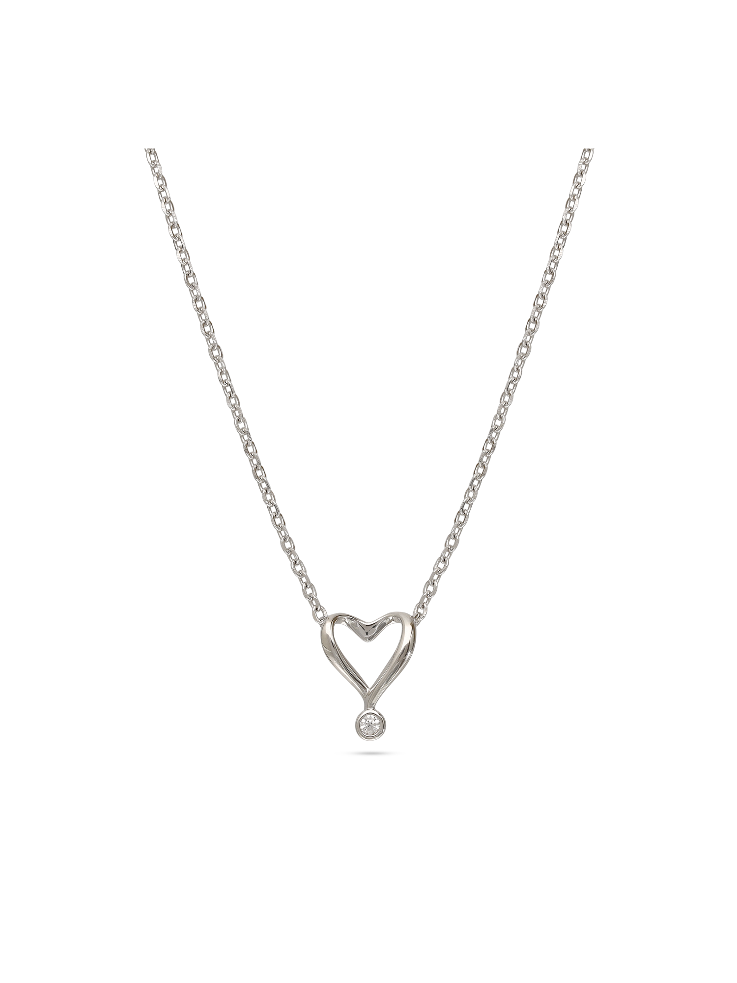 Fio com pendente, Prata de lei 925, Zircónia de cultivo, Claro, Coração, Feito à mão, Prateado, comprimento do pendente: 1.2 cm, largura do pendente: 1.0 cm, 2.65 gramas.