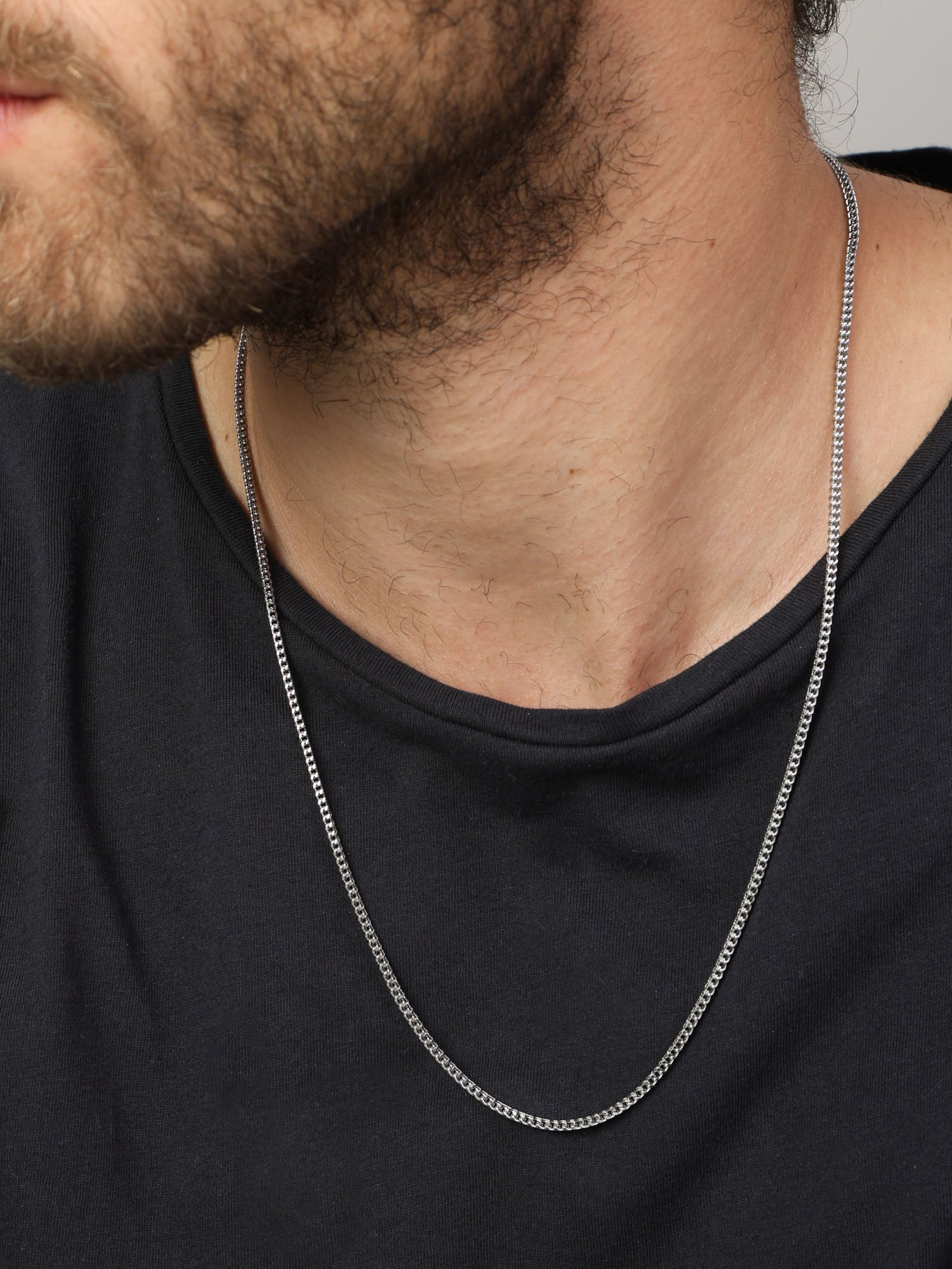 colar masculino, Aço inoxidável, Nenhuma pedra, Sem cor, Forma não específica, Prateado, 9.00 gramas.