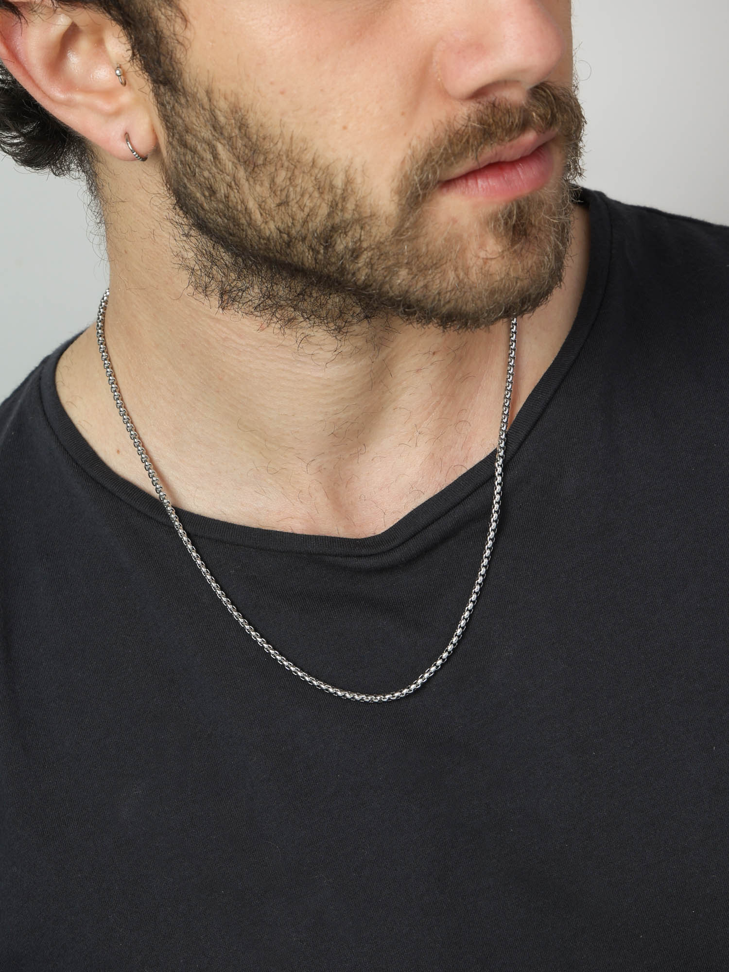 colar masculino, Aço inoxidável, Nenhuma pedra, Sem cor, Forma não específica, Prateado, 15.70 gramas.