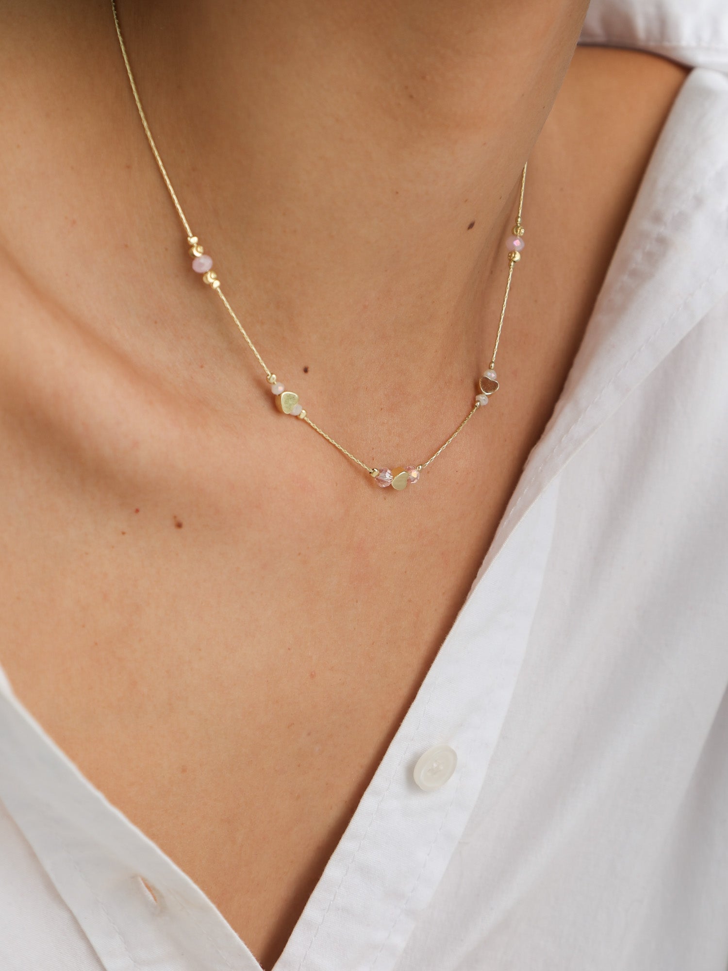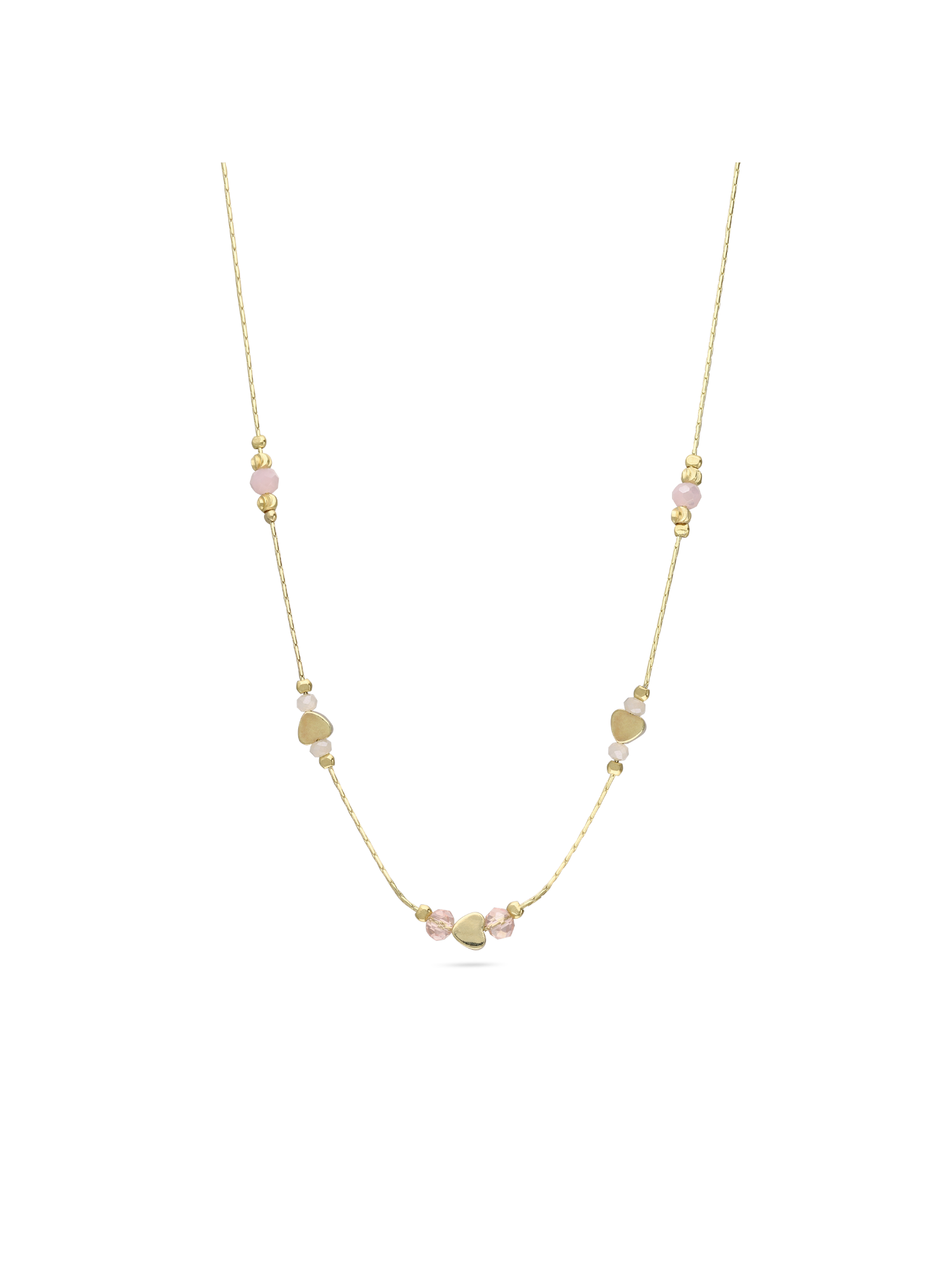 Cadeia de elementos, Banhado a Ouro, Vidro cristal, Branco, Rosa, Coração, Círculo, Feito à mão,, Dourado, 3.94 gramas.