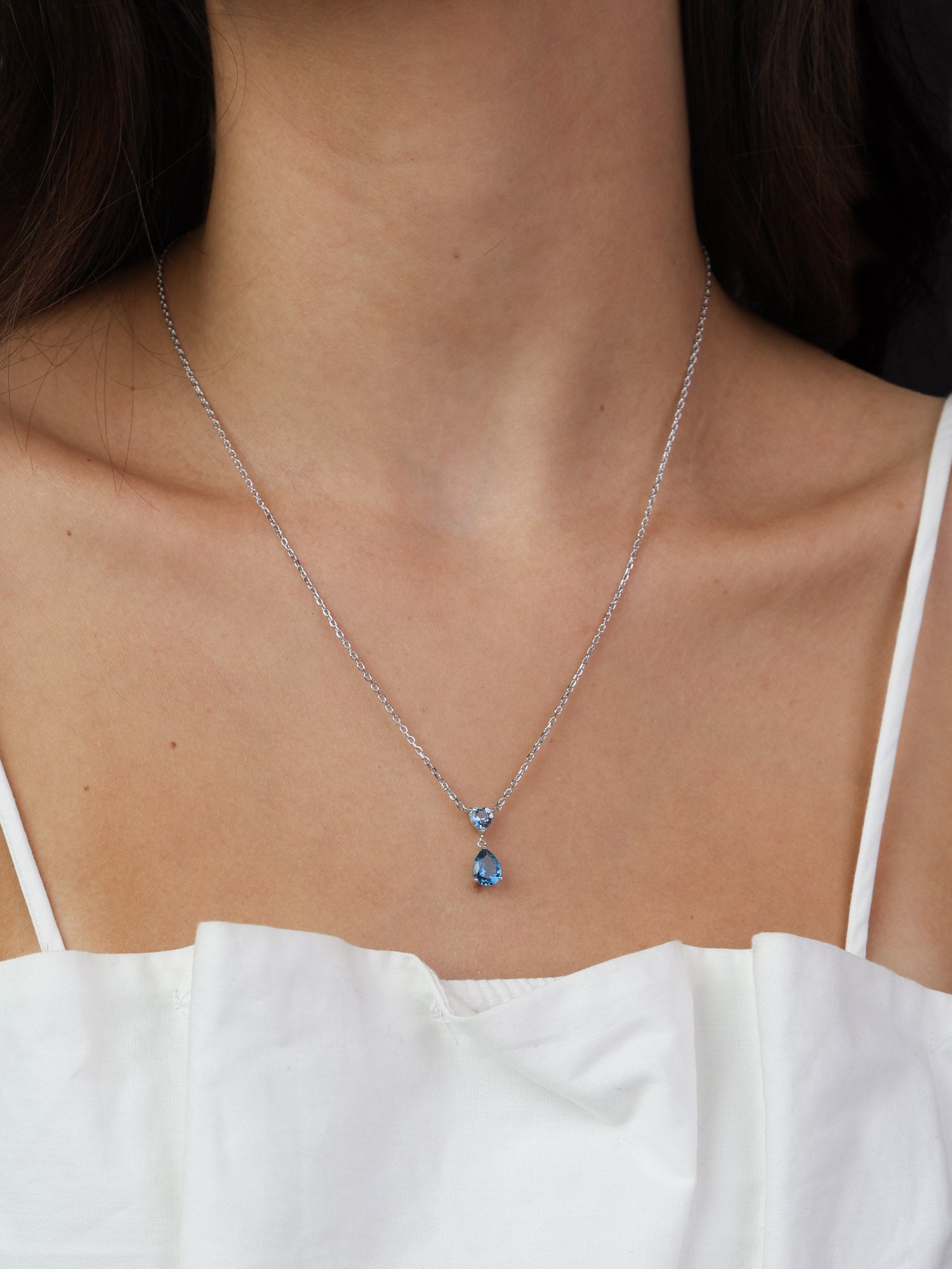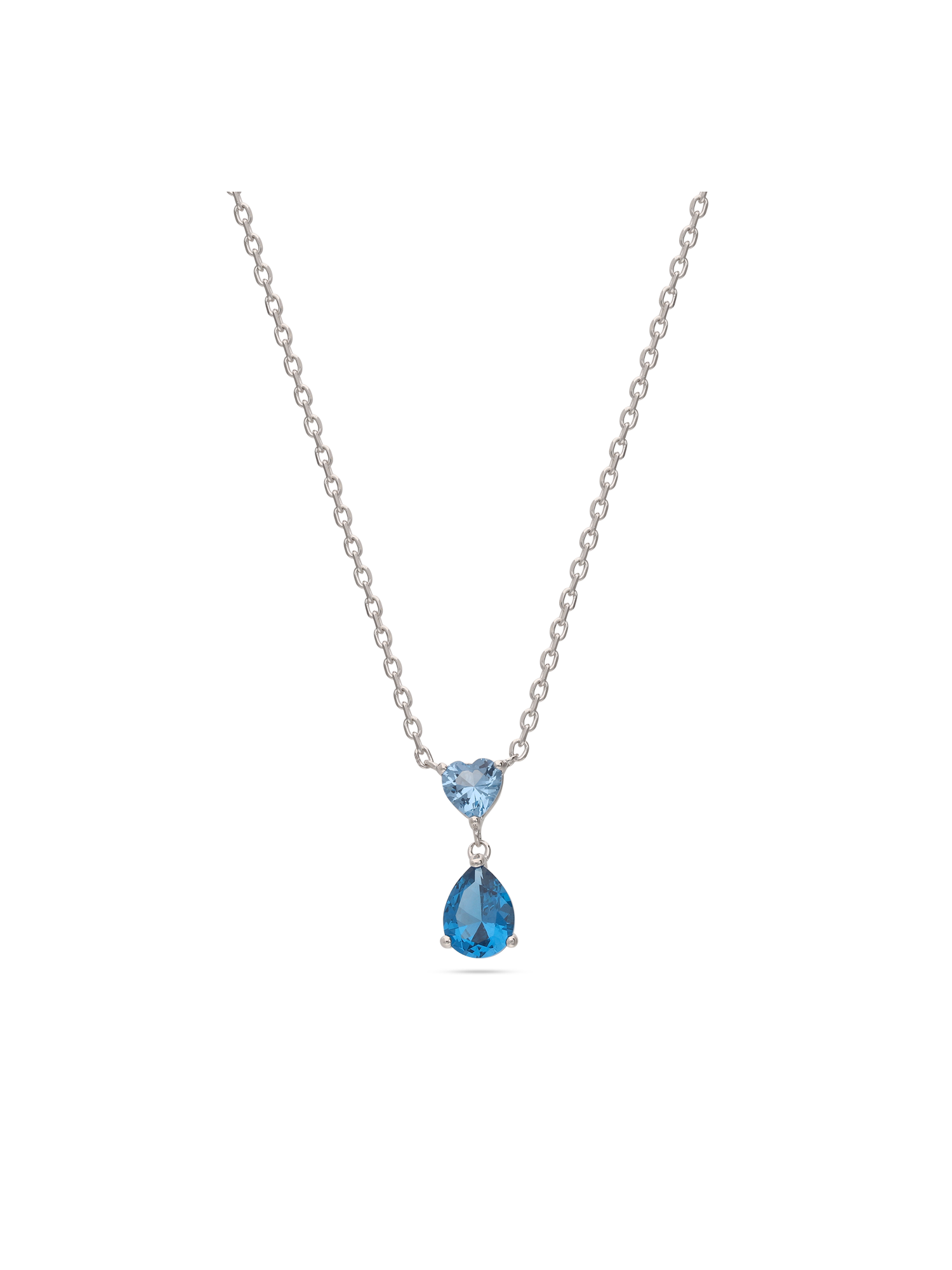 Fio com pendente, Prata de lei 925, Zircónia de cultivo, Azul, Azul céu, Coração, Lágrima, Feito à mão, Prateado, comprimento do pendente: 1.6 cm, largura do pendente: 0.5 cm, 3.40 gramas.