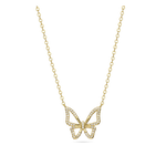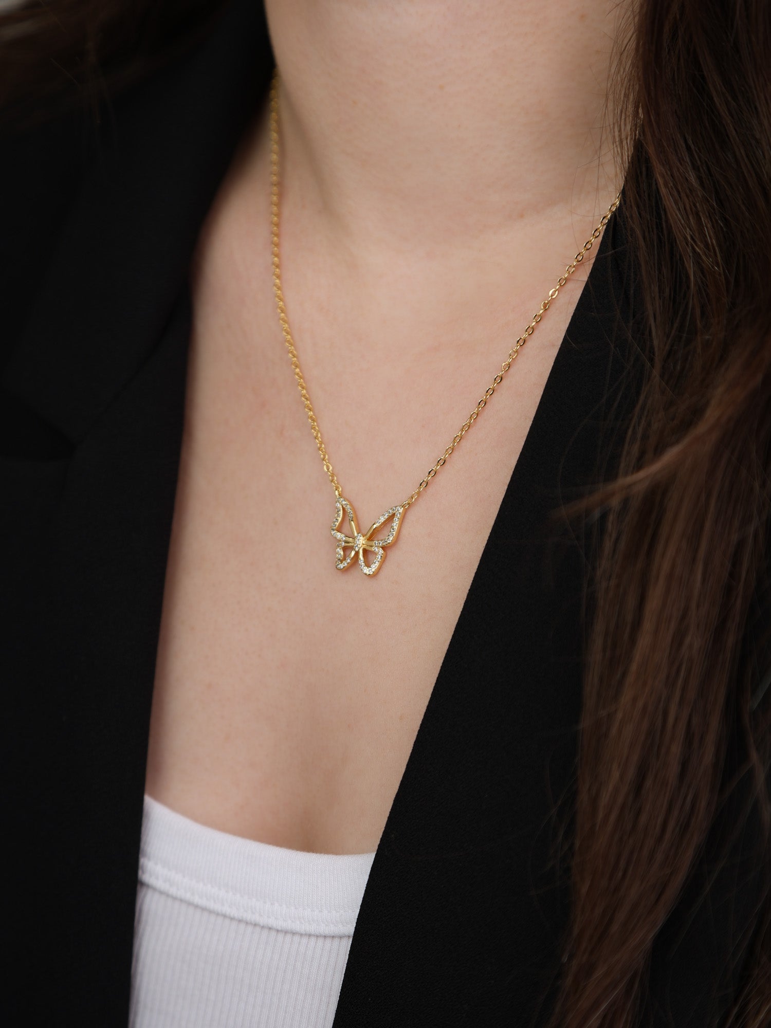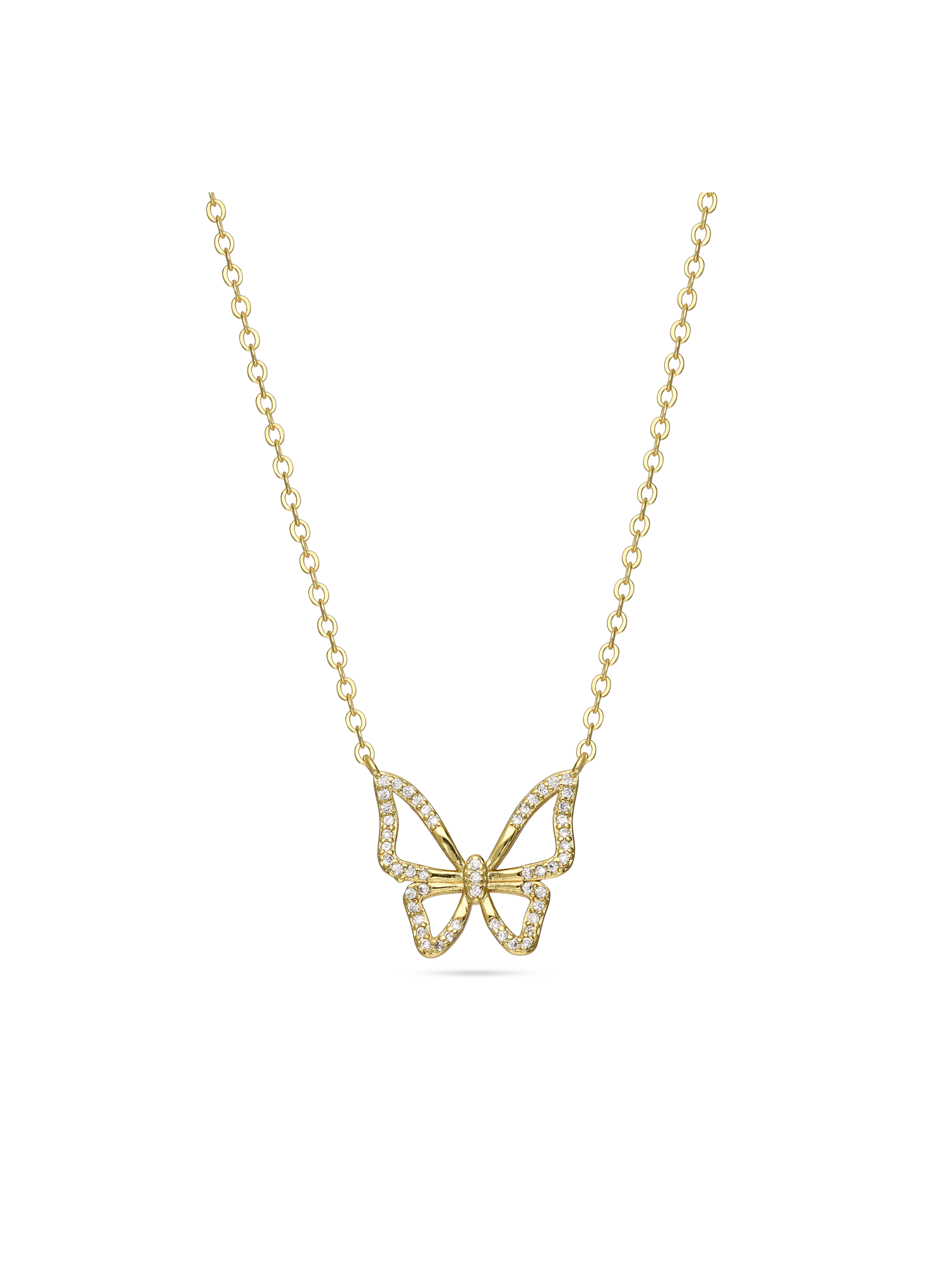 Fio com pendente, Banhado a Ouro, Zircónia de cultivo, Claro, Borboleta, Feito à mão, Dourado, comprimento do pendente: 1.8 cm, largura do pendente: 2.0 cm, 2.70 gramas.