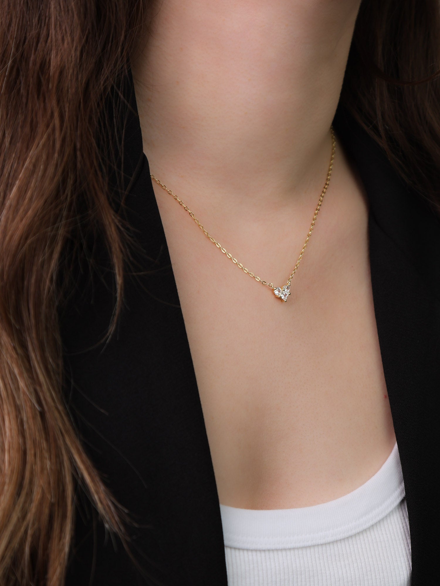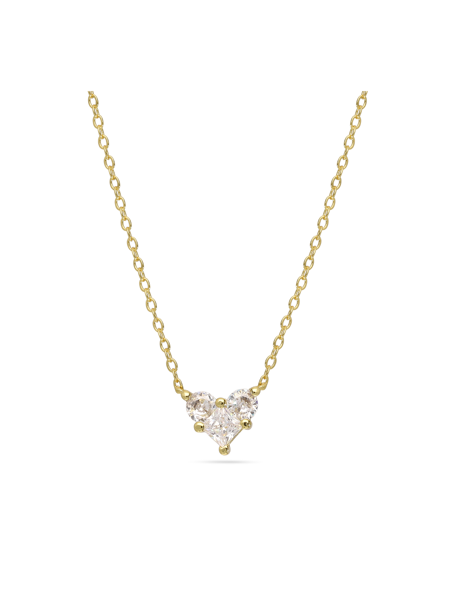 Fio com pendente, Banhado a Ouro, Zircónia de cultivo, Claro, Coração, Feito à mão, Dourado, comprimento do pendente: 0.8 cm, largura do pendente: 1.0 cm, 2.30 gramas.