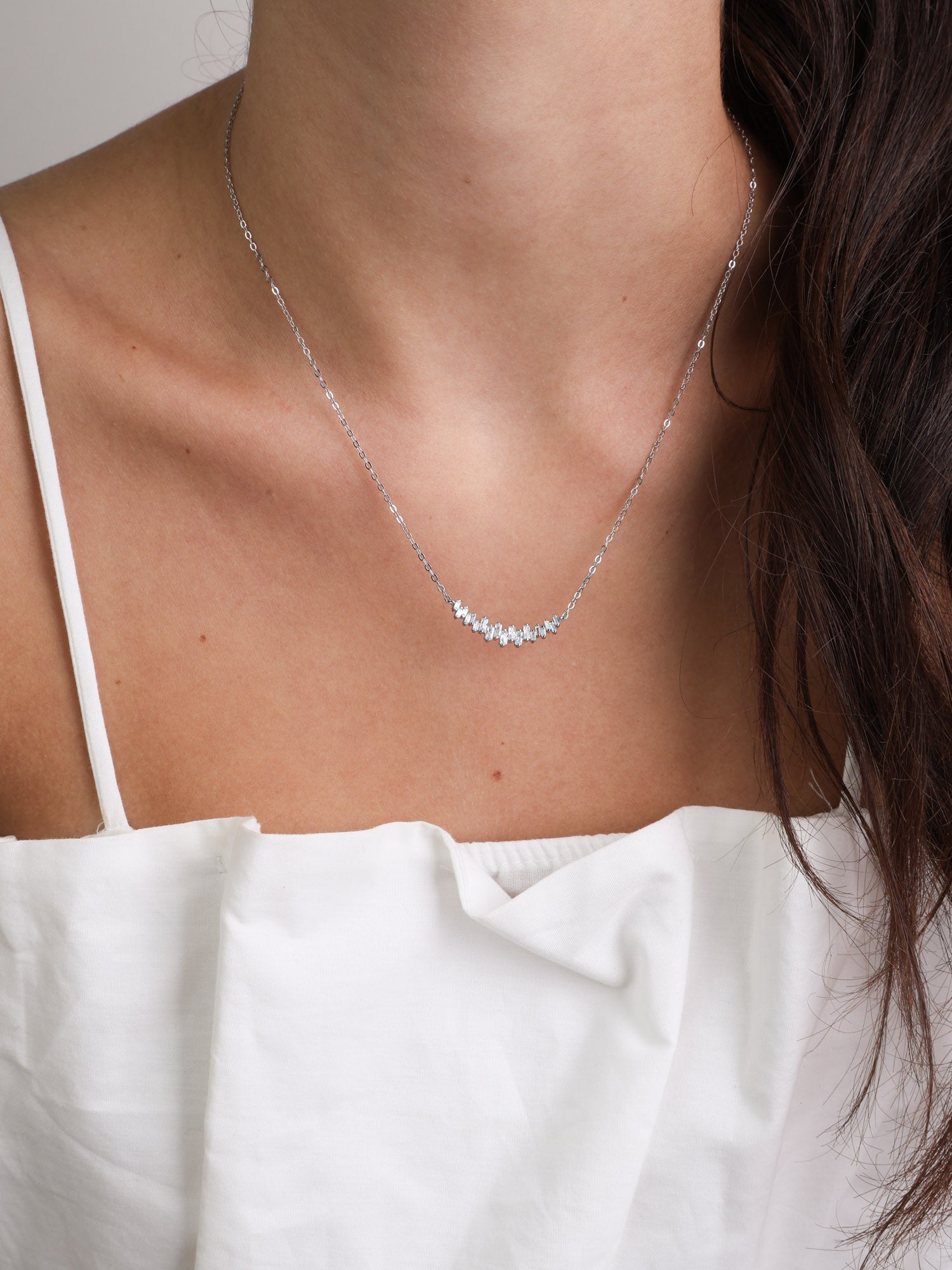 Fio com pendente, Prata de lei 925, Zircónia de cultivo, Claro, Quadrado, Feito à mão, Prateado, comprimento do pendente: 1.0 cm, largura do pendente: 2.5 cm, 2.10 gramas.