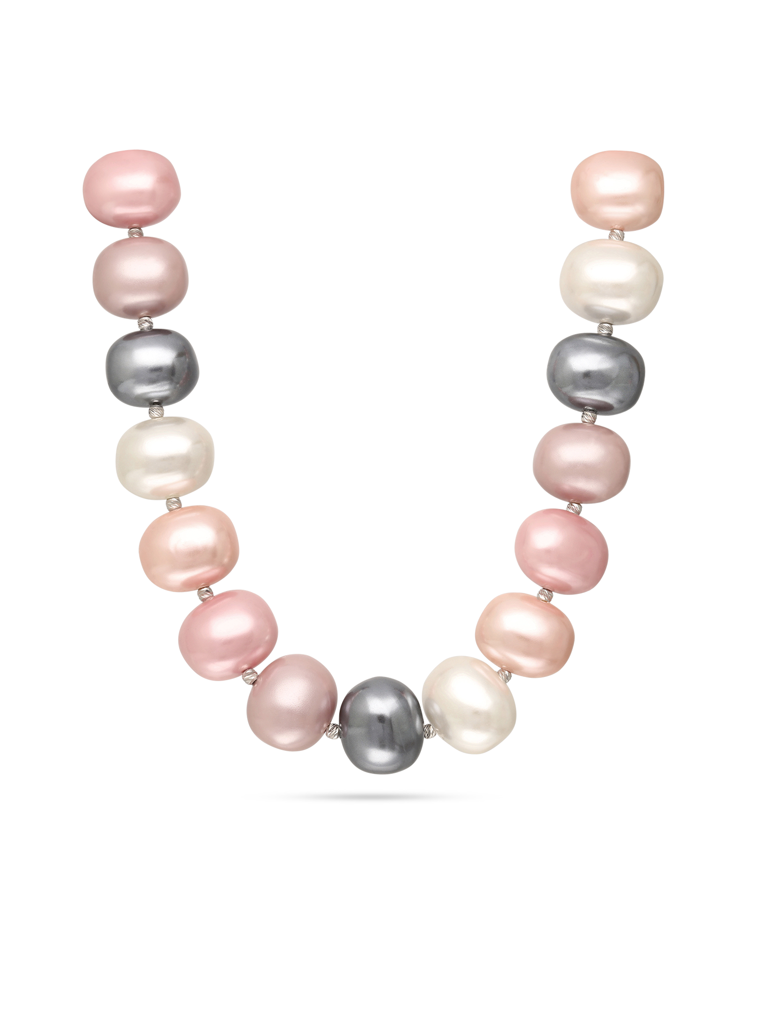 Colar de pedra, Prata de lei 925, Madrepérola de cultivo, Colorido, Círculo, Feito à mão, Prateado, 97.30 gramas.