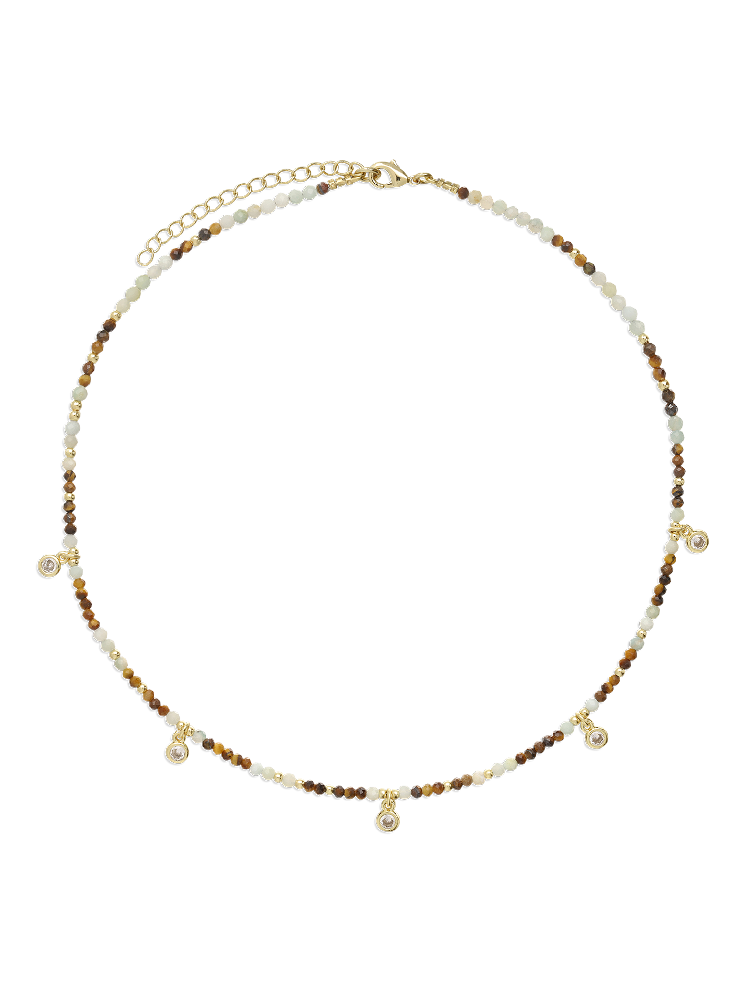 Colar choker, Banhado a Ouro, Zircónia de cultivo, Quartzo de cultivo, Colorido, Círculo, Feito à mão, Dourado, 8.30 gramas.