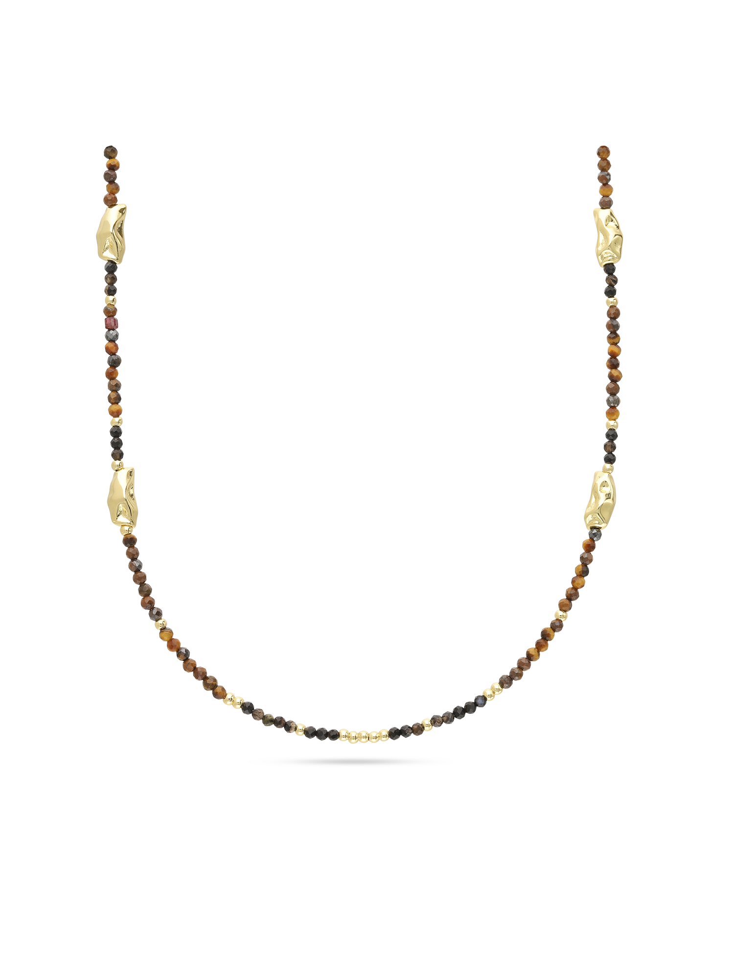 Colar de pedra banhado a ouro com ágata preta e olho-de-tigre