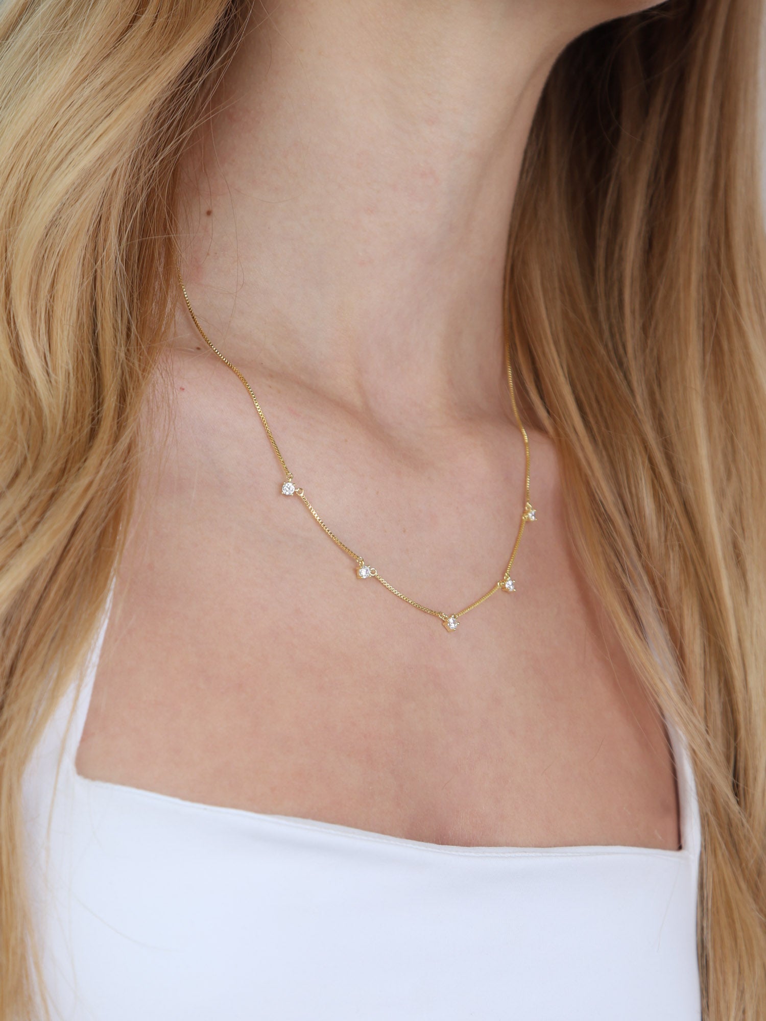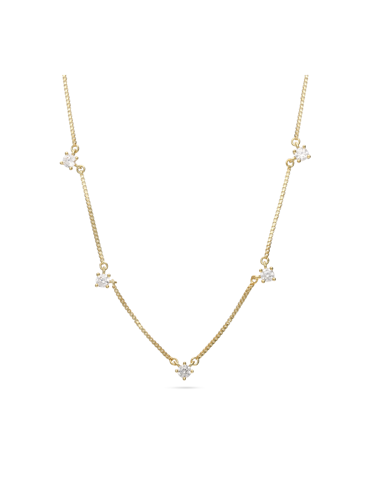 Cadeia de elementos, Banhado a Ouro, Zircónia de cultivo, Claro, Círculo, Feito à mão, Dourado, 2.71 gramas.