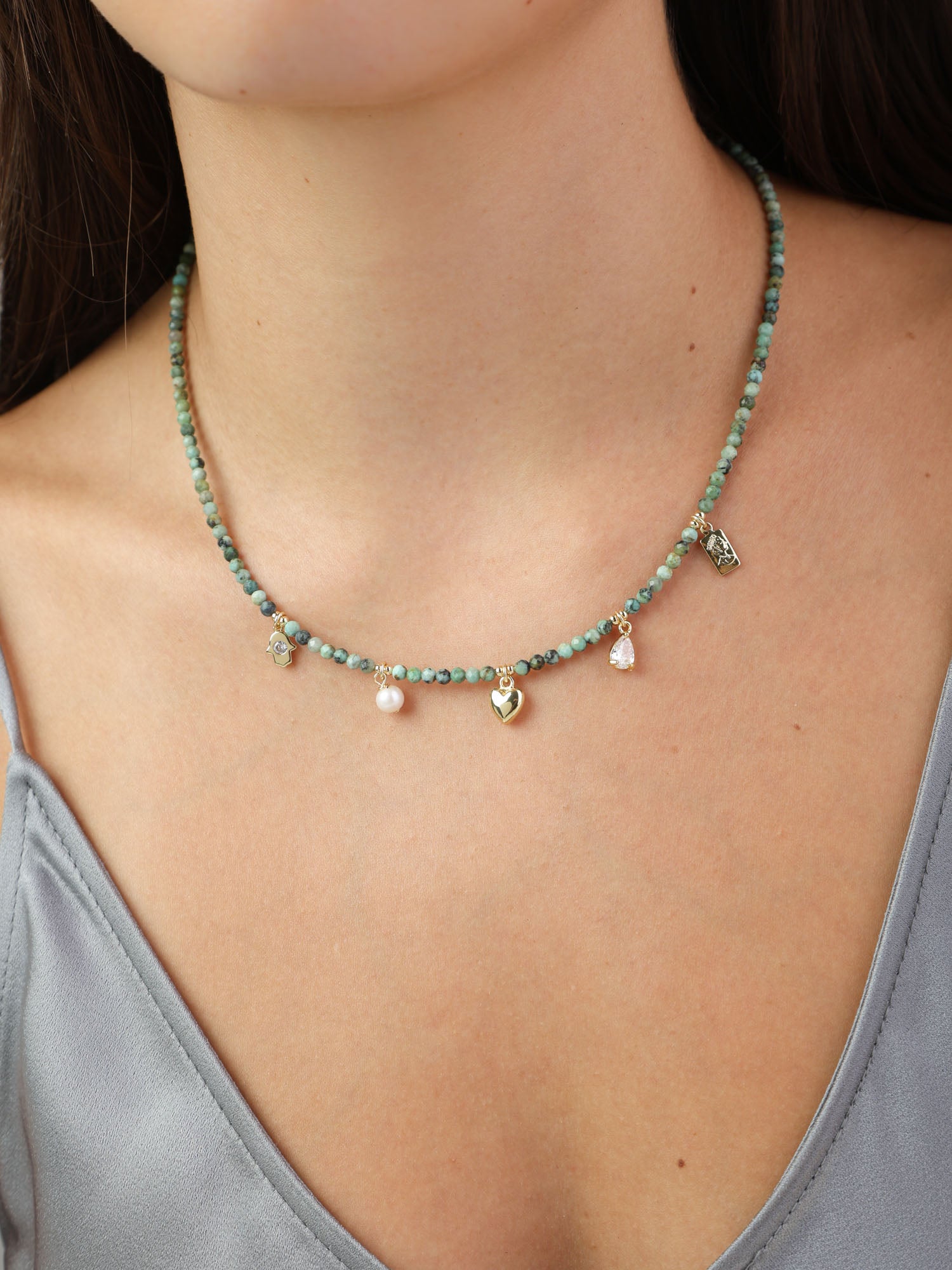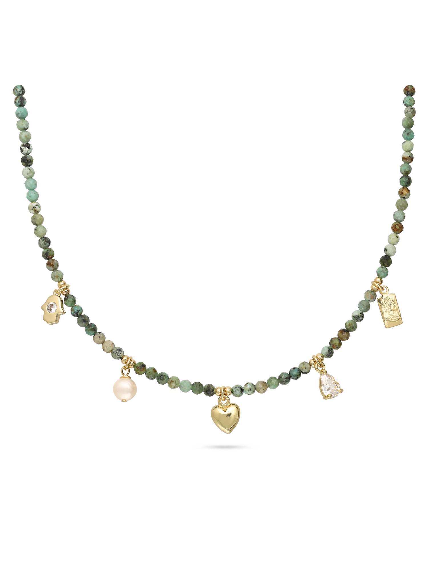 Colar de pedra, Banhado a Ouro, Zircónia de cultivo, Pérola cultivada, Turquesa de cultivo