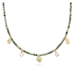 Colar de pedra, Banhado a Ouro, Zircónia de cultivo, Pérola cultivada, Turquesa de cultivo, Colorido, Variedade de formas, Feito à mão, Dourado, 10.20 gramas.