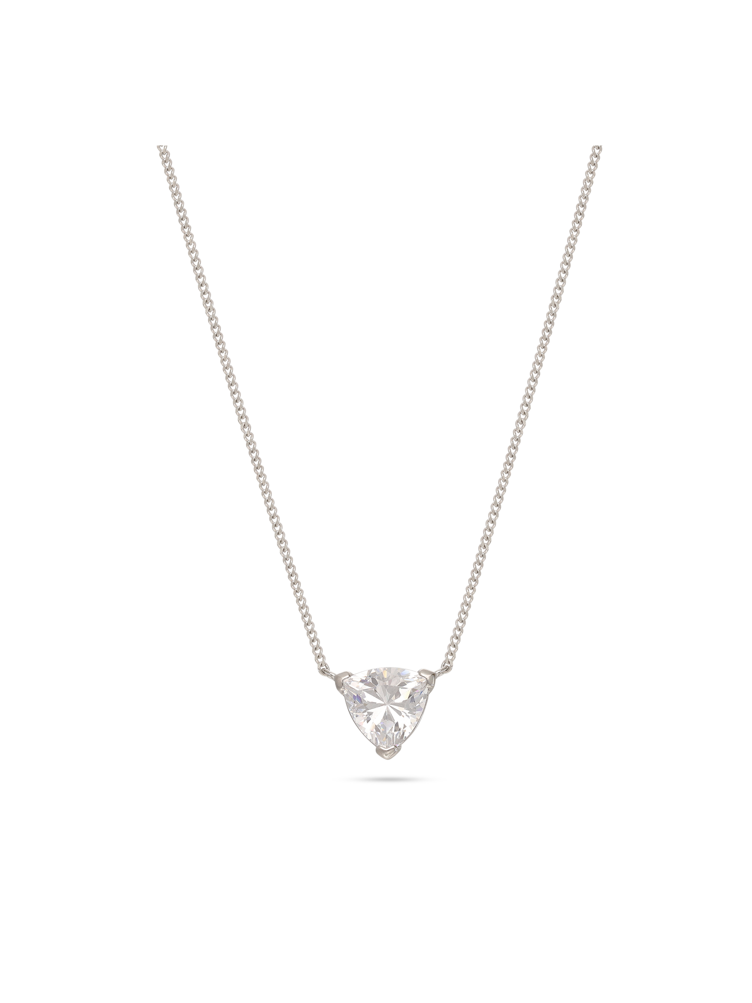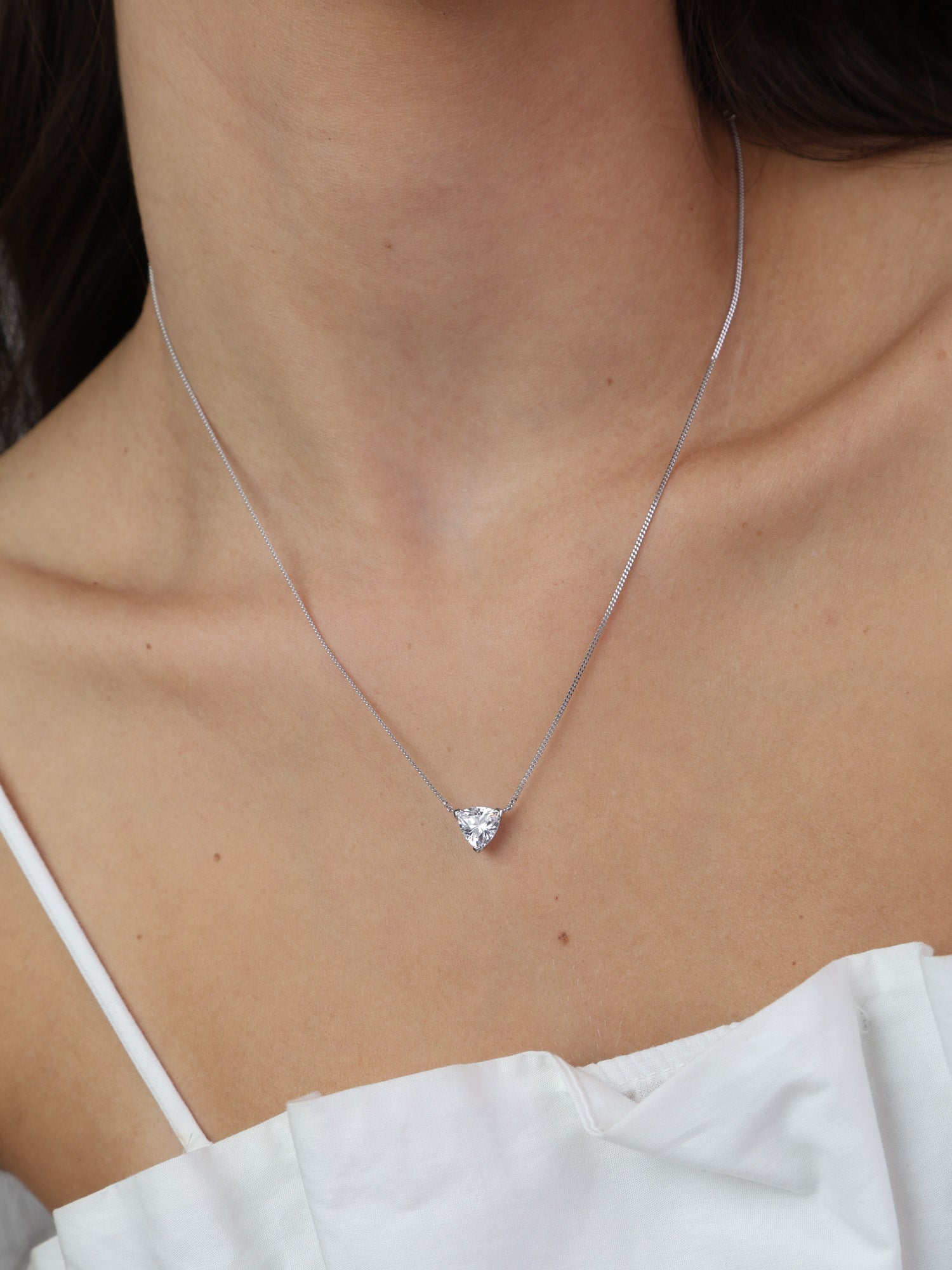 Fio com pendente, Prata de lei 925, Zircónia de cultivo, Claro, Triângulo, Feito à mão, Prateado, 2.88 gramas.