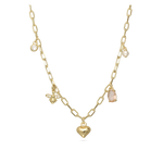 Cadeia de elementos, Banhado a Ouro, Zircónia de cultivo, Pérola cultivada, Colorido, Variedade de formas, Feito à mão, Dourado, 6.67 gramas.