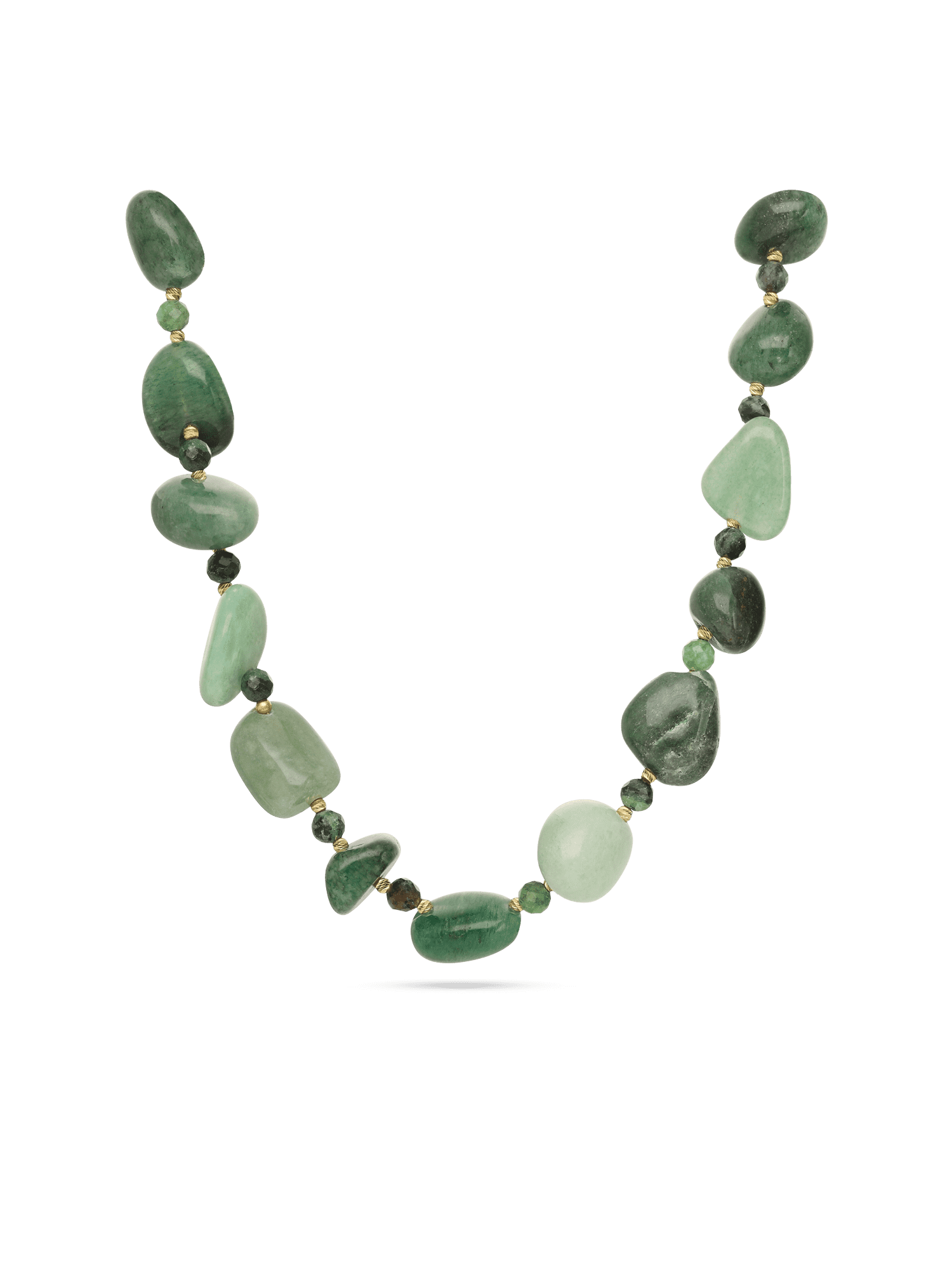 Colar de pedra, Banhado a Ouro, Ruby de cultivo, Aventurina de cultivo, Vermelho, Verde, Variedade de formas, Feito à mão, Dourado, 47.20 gramas.