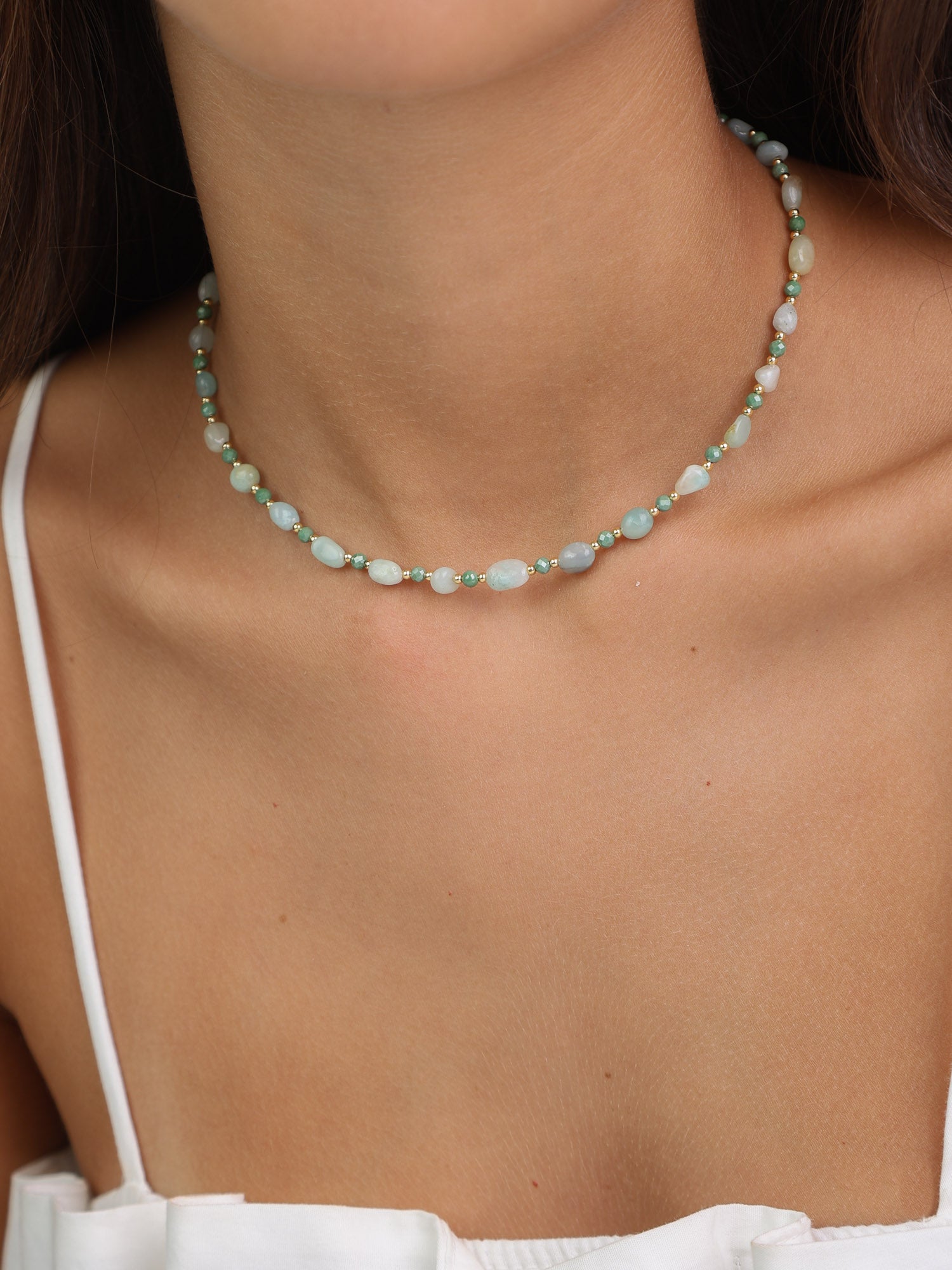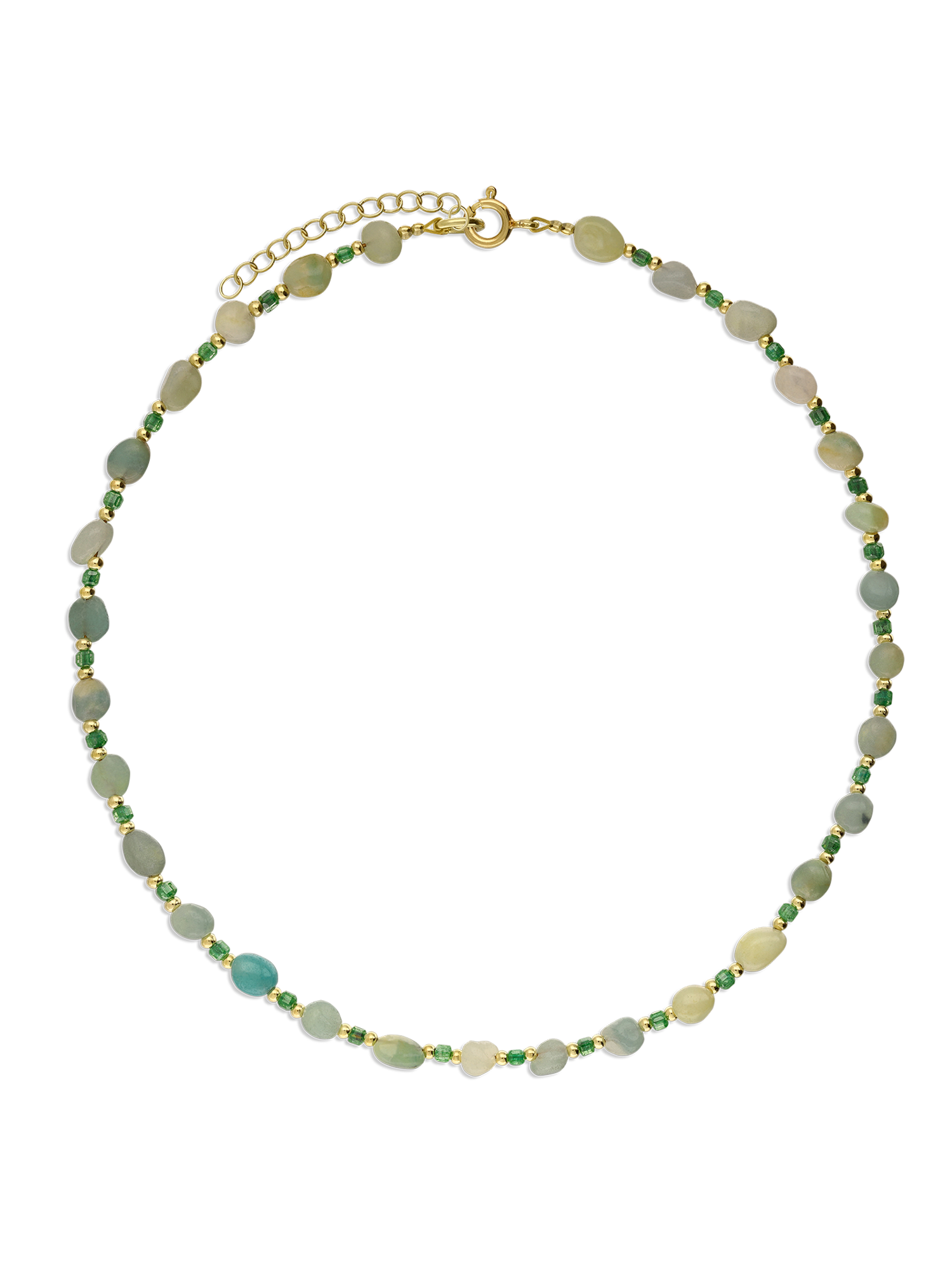 Colar choker, Banhado a Ouro, Zircónia de cultivo, Amazonita de cultivo
