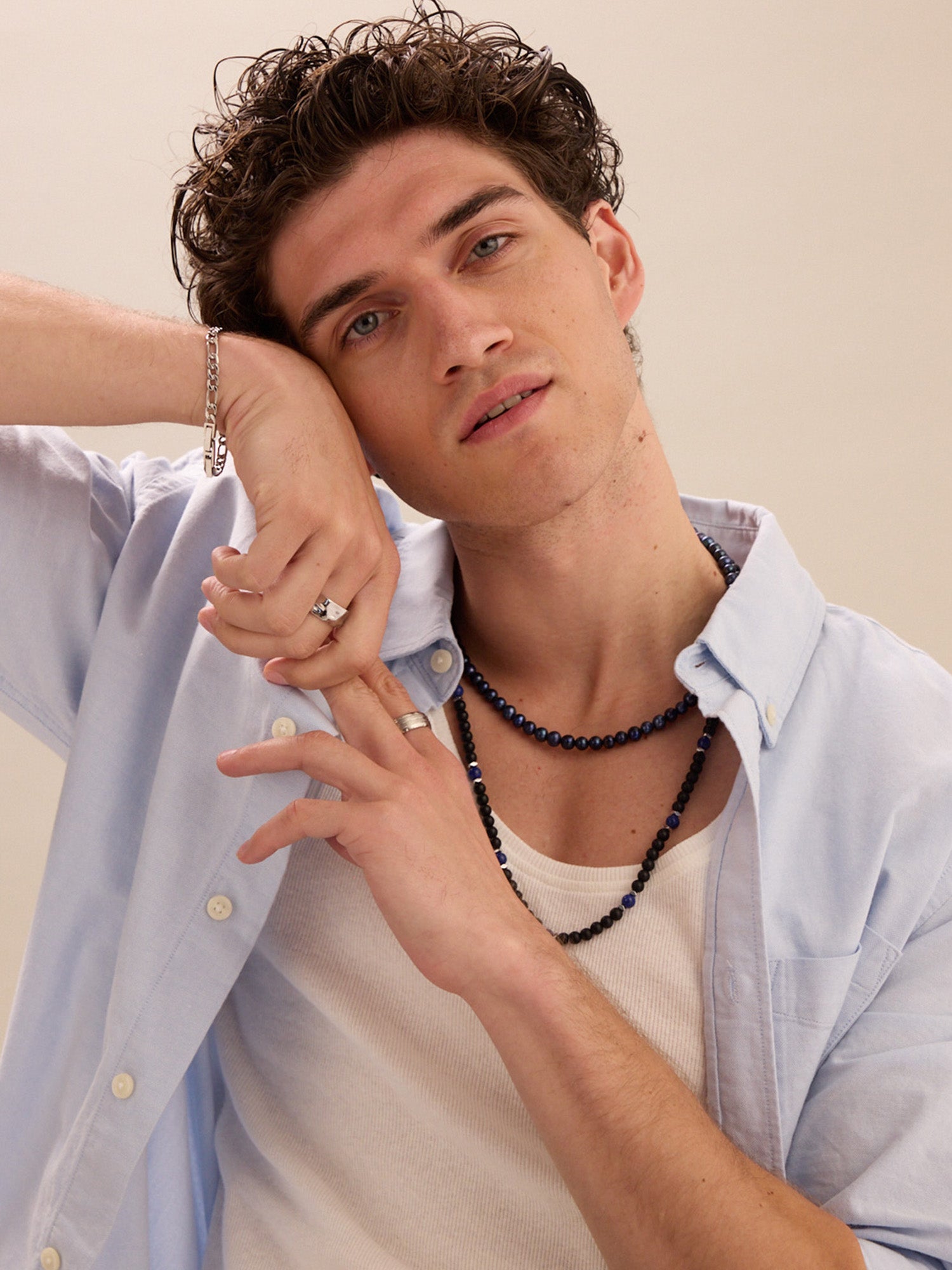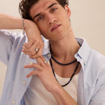 colar masculino, Prata de lei 925, Pérola cultivada, Preto, Círculo, Prateado, 28.70 gramas.