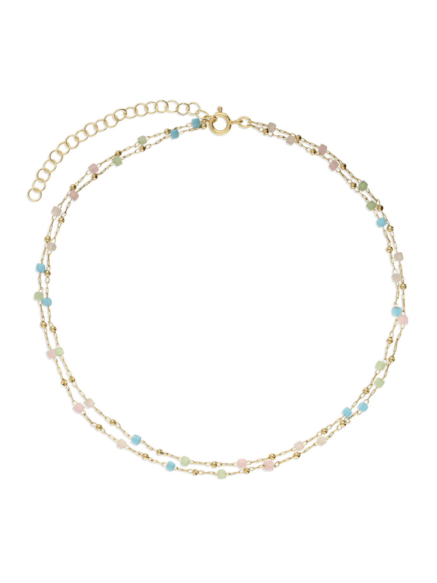 Colar choker, Banhado a Ouro, Vidro cristal, Colorido, Quadrado, Círculo, Feito à mão, Dourado, 4.00 gramas.