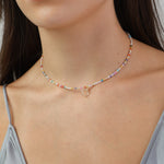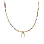 Colar de pedras banhado a ouro com zircónias coloridas e pendente círculo