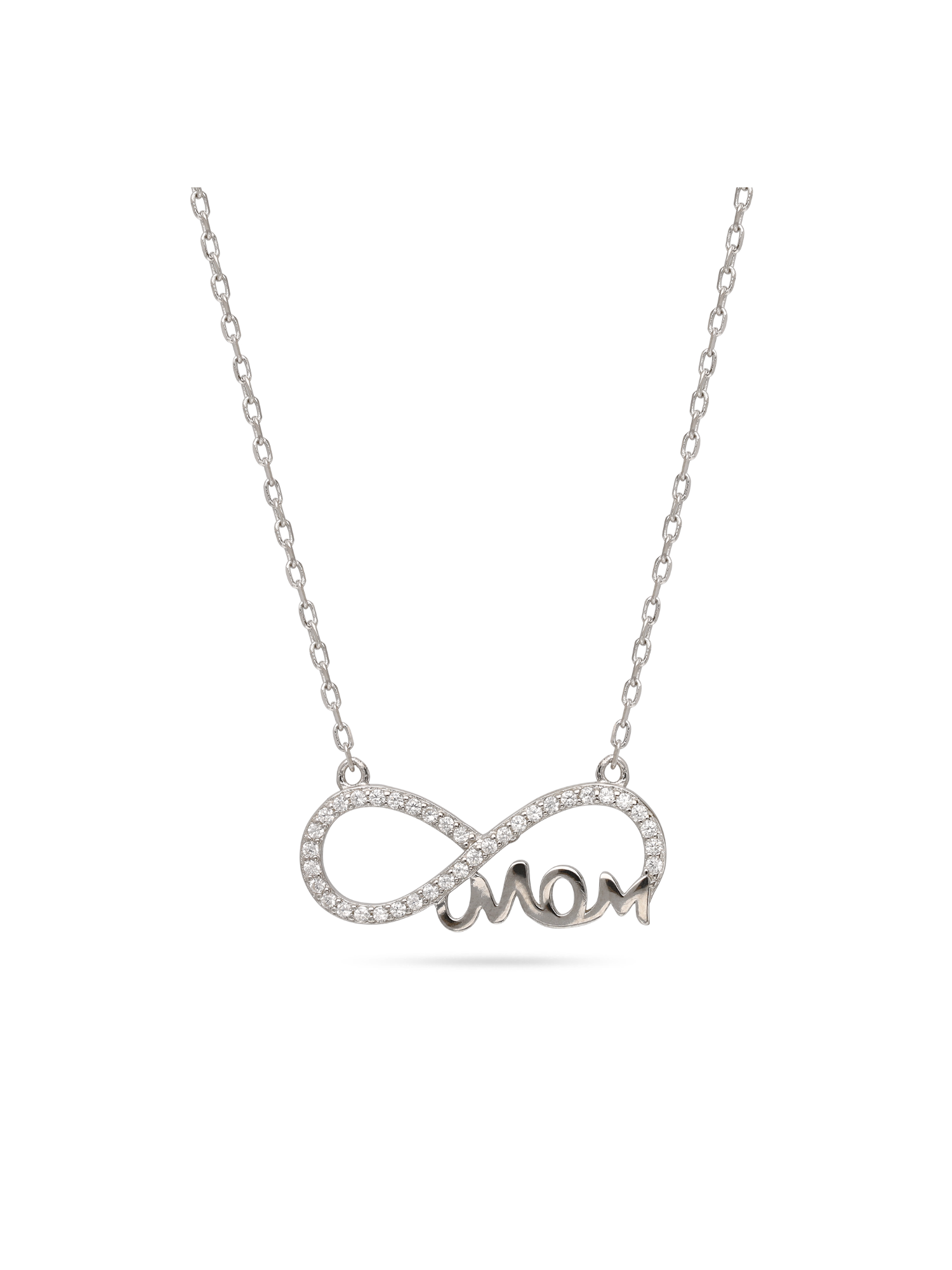 Fio com pendente, Prata de lei 925, Zircónia de cultivo, Claro, Infinito, Feito à mão, Prateado, 3.04 gramas.