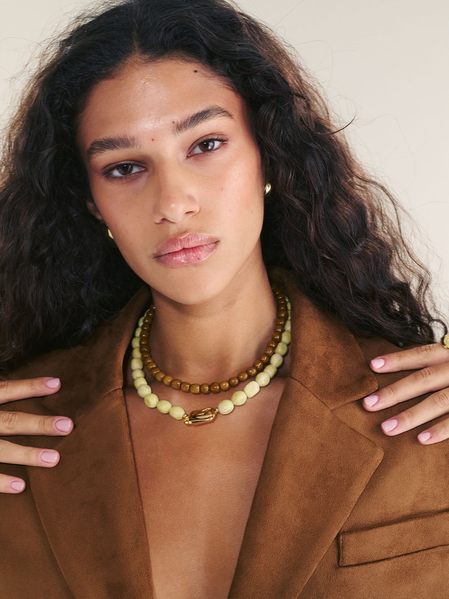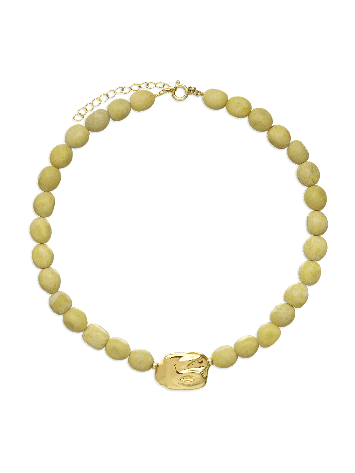 Colar de pedra, Banhado a Ouro, Jadeíte de cultivo, Rezin
